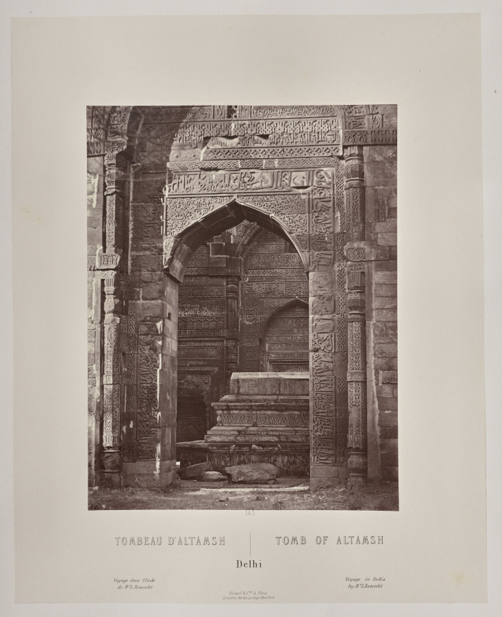 Documenting one of Delhi's most important early Islamic monuments, the photograph exemplifies archaeological photography's crucial role in recording medieval architecture before modern restoration efforts.