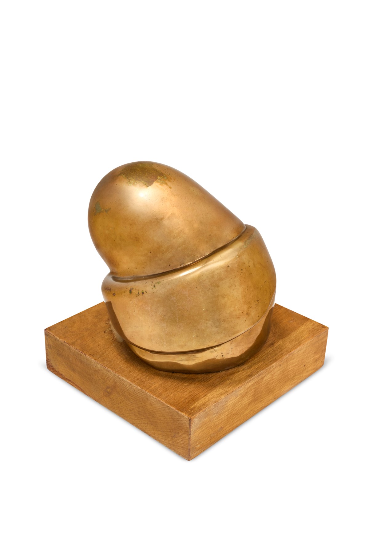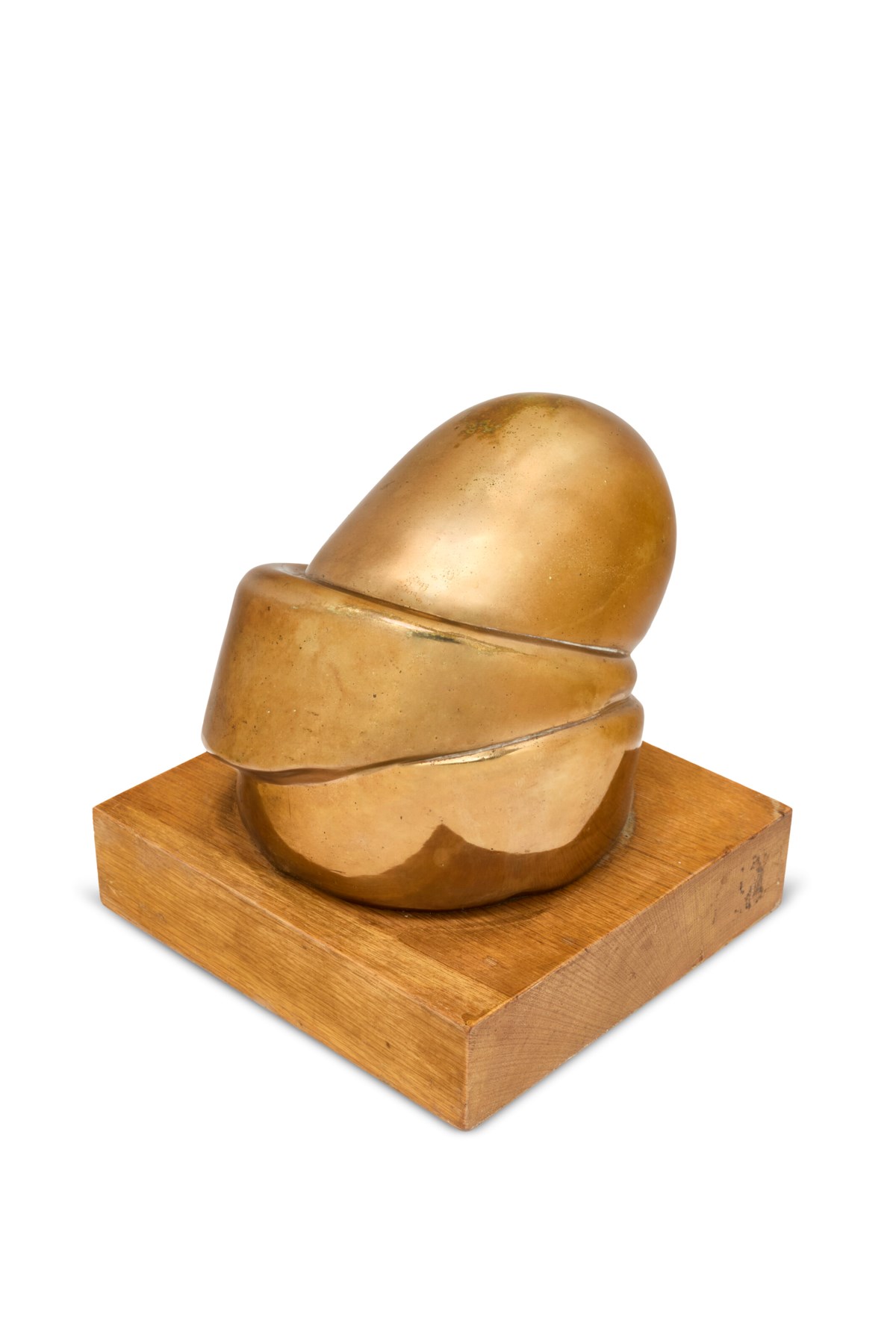 A sculptural bronze form rendered in warm golden patina rests in a state of quiet repose, evoking the vulnerability and surrender inherent in sleep. Bourgeois transforms the human experience of unconsciousness into a tactile, weighty presence, her signature blend of psychological intensity and sensuous materiality evident in every contour. The wooden base grounds the gilded form, creating a dialogue between the organic and the cast, the natural and the transformed.