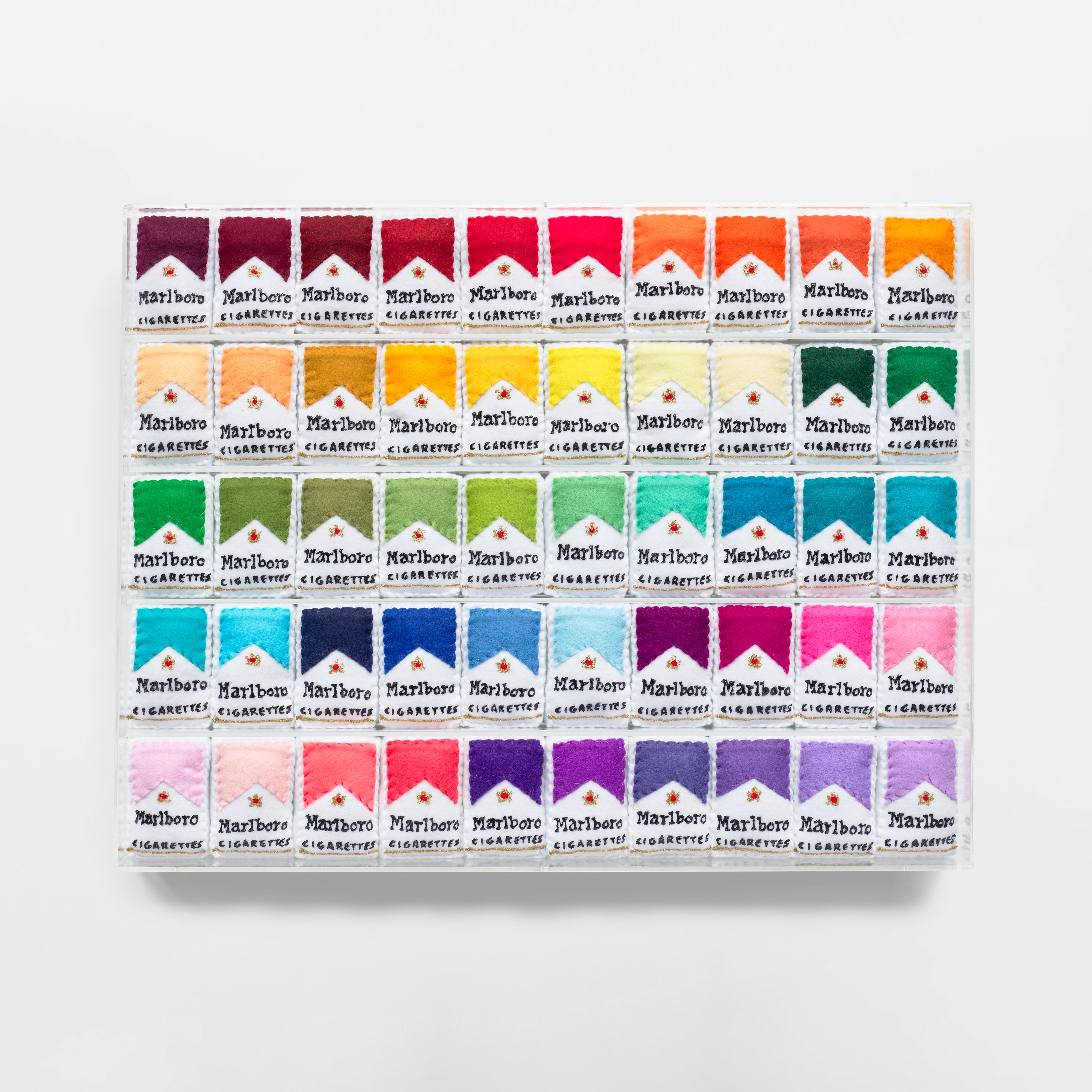 A vibrant and tactile sculpture by Lucy Sparrow, "Smoke The Rainbow" is a hand-stitched and painted work crafted from felt, acrylic, and thread. Sparrow's signature approach transforms everyday imagery into soft, playful three-dimensional form, inviting viewers to reconsider familiar objects through the warmth and intimacy of handmade craft. The rich, rainbow-hued palette brings an energetic and joyful quality to the piece, reflecting the artist's celebrated ability to merge pop culture with meticulous textile artistry.