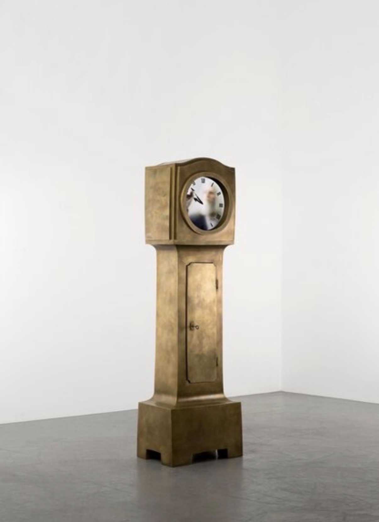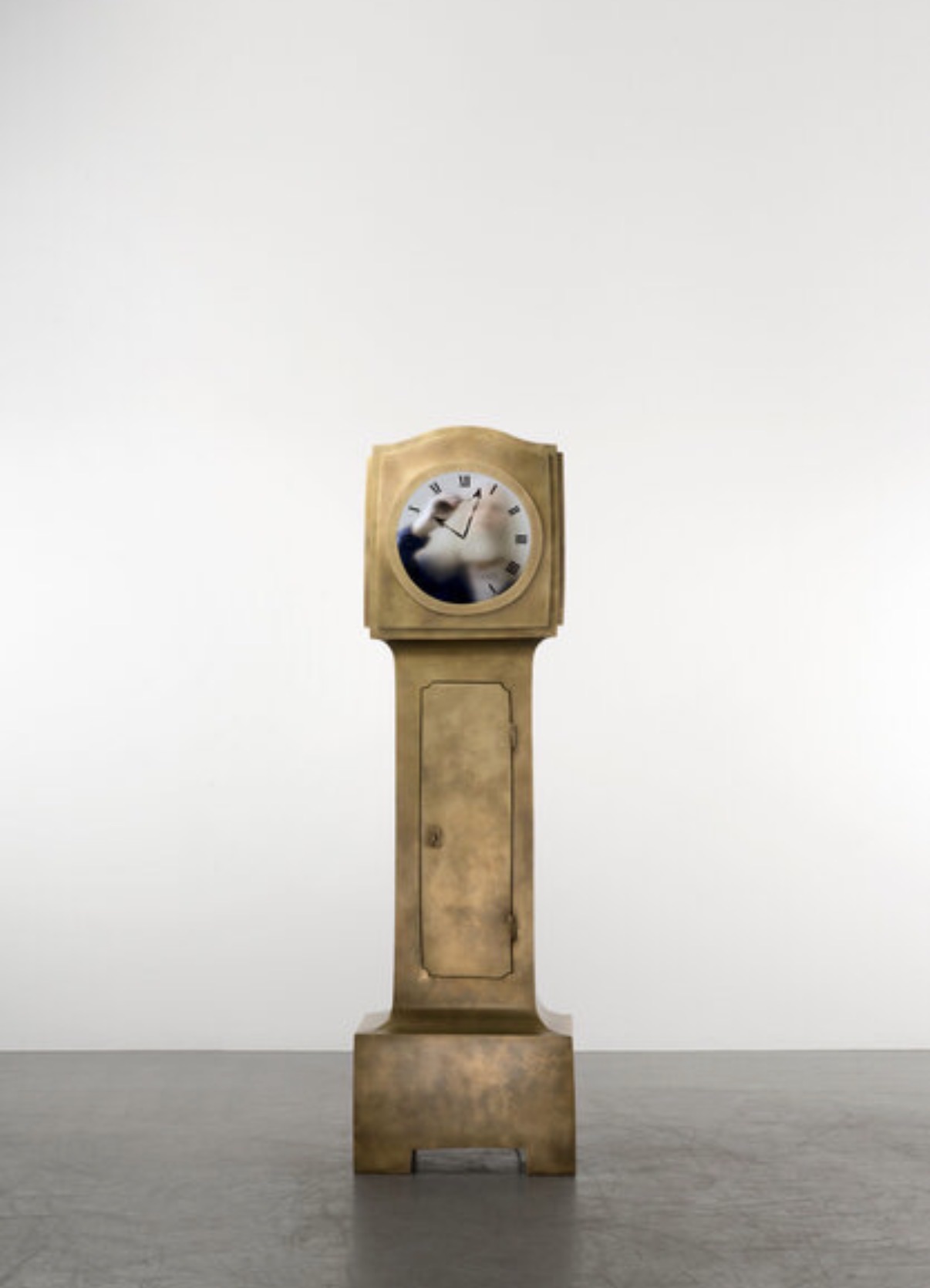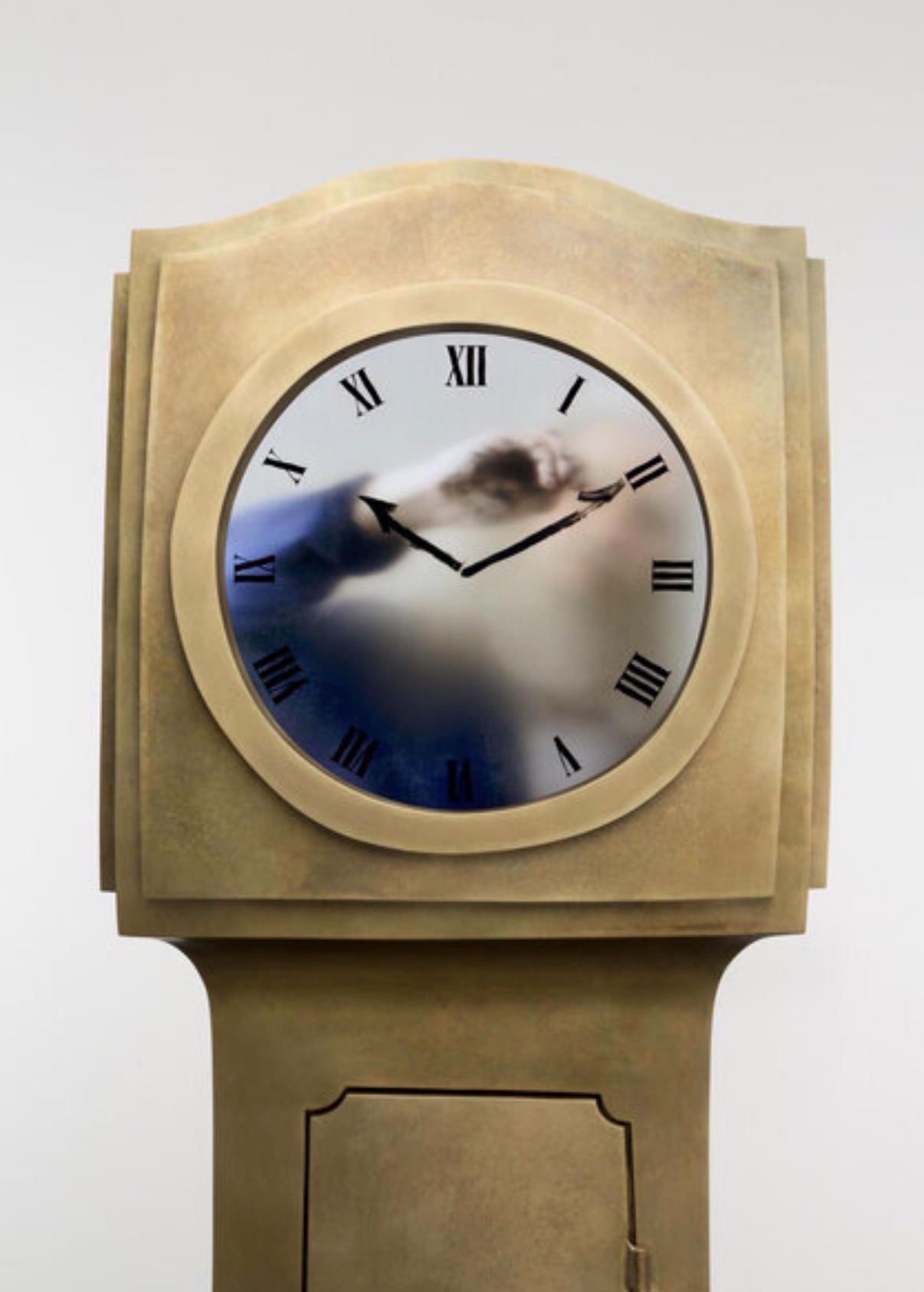 Maarten Baas's Grandfather Clock The Father is a monumental functional sculpture standing over two metres tall, crafted from brass and bronze, in which a 12 hour looping digital performance replaces traditional clockwork mechanisms. A person lives inside the clock face, continuously drawing and redrawing the correct time minute by minute, transforming timekeeping into an intimate human act. Part of the celebrated Baas Real Time series, this work challenges the viewer to reconsider time as a purely human construct rather than a mechanical one. The edition includes a Certificate of Authenticity issued by the gallery and an additional signature bronze plate.