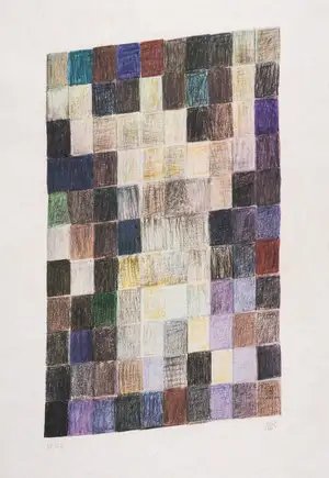 Man Ray's "Tapestry" is a lithograph with pochoir hand coloring from 1973, produced in a limited edition of 45 prints by the renowned Parisian workshop Atelier Jacomet. The work exemplifies Ray's continued experimentation with printmaking techniques in his later years, combining mechanical and manual processes to achieve rich chromatic effects on fine Japan paper. Measuring nearly 30 by 22 inches, this modestly sized but generously margined print reflects the artist's enduring interest in exploring the intersection of abstraction and representation through layered color and form.