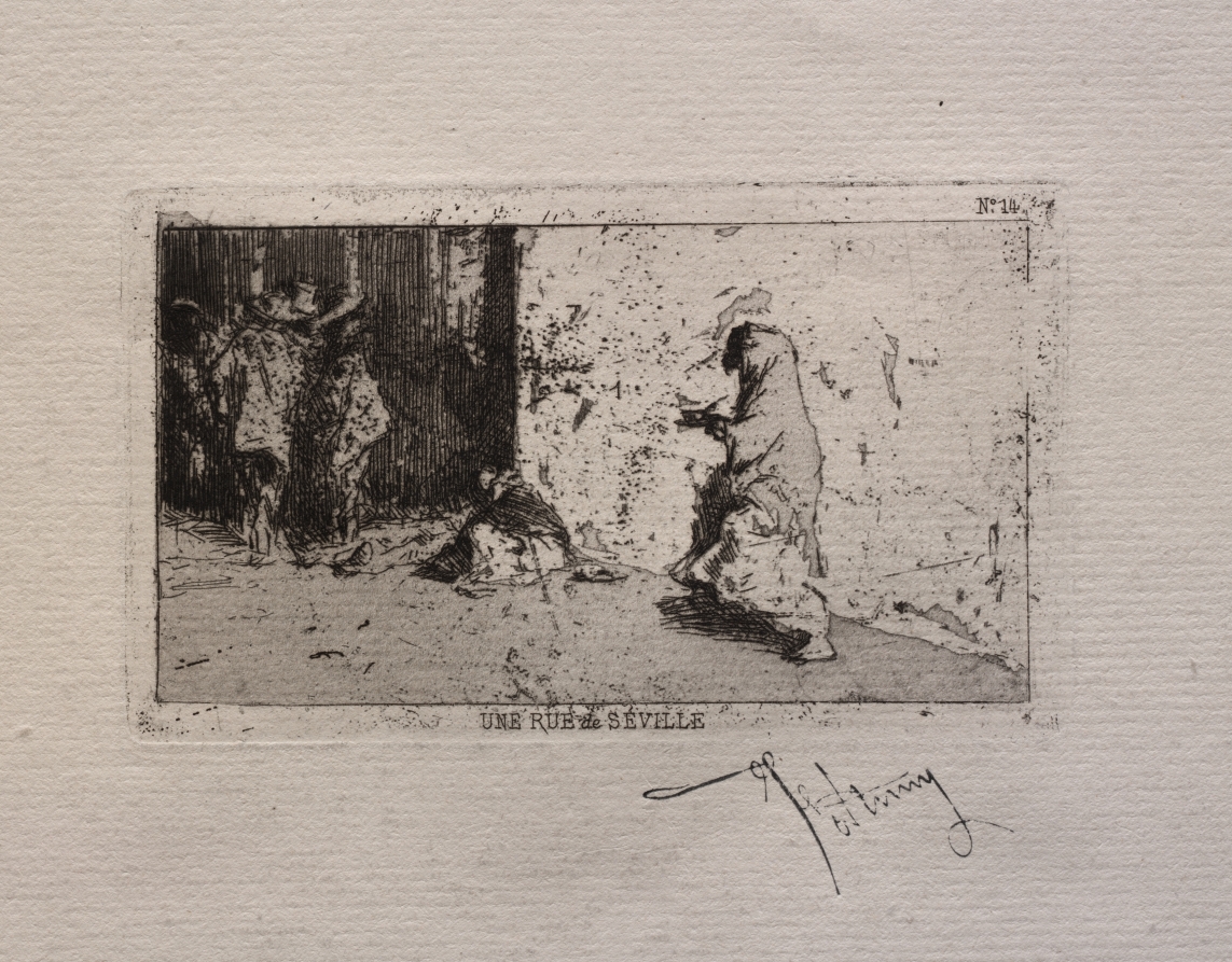 Architectural details and atmospheric perspective demonstrate Fortuny's ability to capture the essence of Spanish urban landscapes through etching.