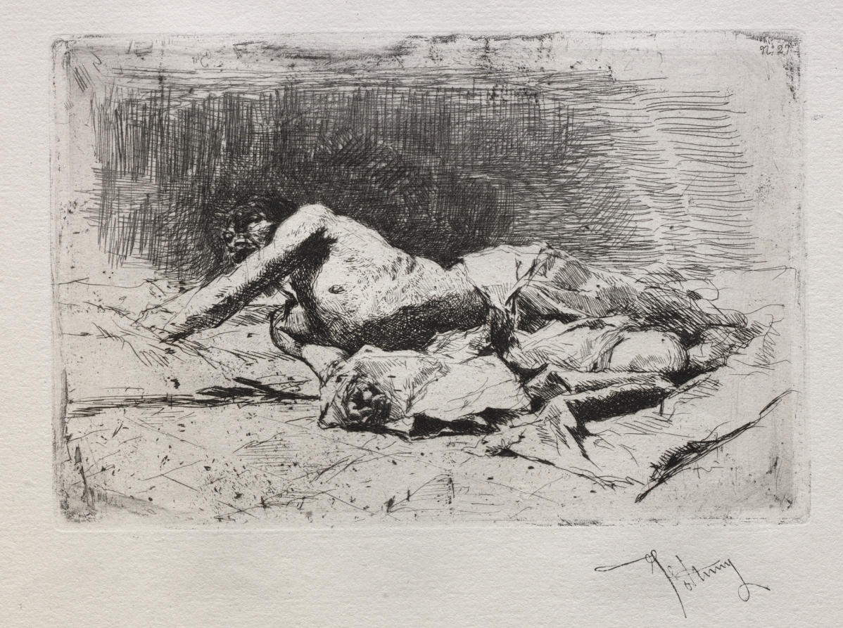 Dynamic movement and emotional intensity mark one of Fortuny's more experimental compositions, pushing beyond his typical orientalist subjects.