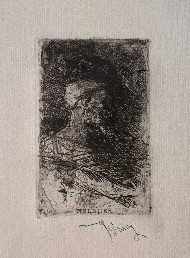 Part of the artist's North African series, this etching showcases Fortuny's skill in capturing the dignity of working people through economical yet expressive linework.