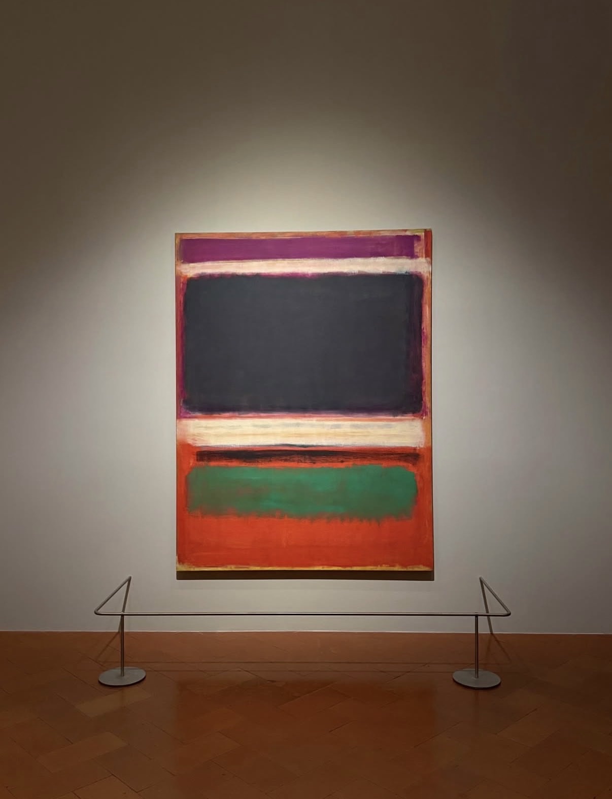 A monumental Color Field painting featuring Rothko's signature stacked rectangular forms in vibrant oranges, deep purples, navy blue, and green. Currently part of the Whitney Museum collection, this work was directly inspired by Rothko's 1950 visit to Pompeii with his wife Mell. The painting exemplifies Rothko's mature style from 1958, created during the pivotal period just before the Seagram Murals commission. The work is currently on view at Palazzo Strozzi's major Rothko exhibition in Florence, Italy, displayed in dialogue with Renaissance architecture.