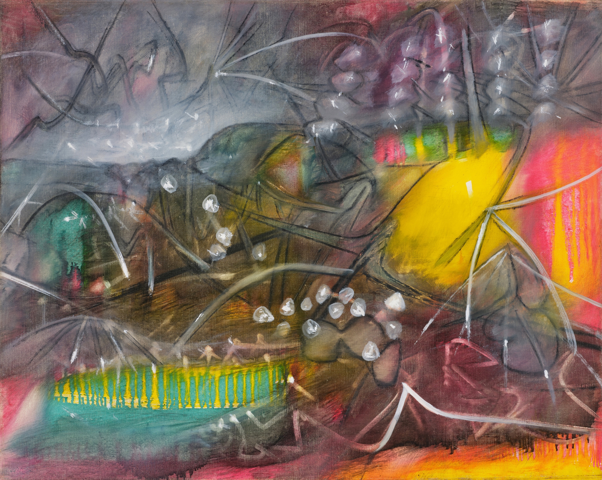Matta's 1952 oil painting titled Eclosion explores surrealist themes through biomorphic forms and dynamic composition. The work demonstrates the artist's interest in psychological and organic imagery.