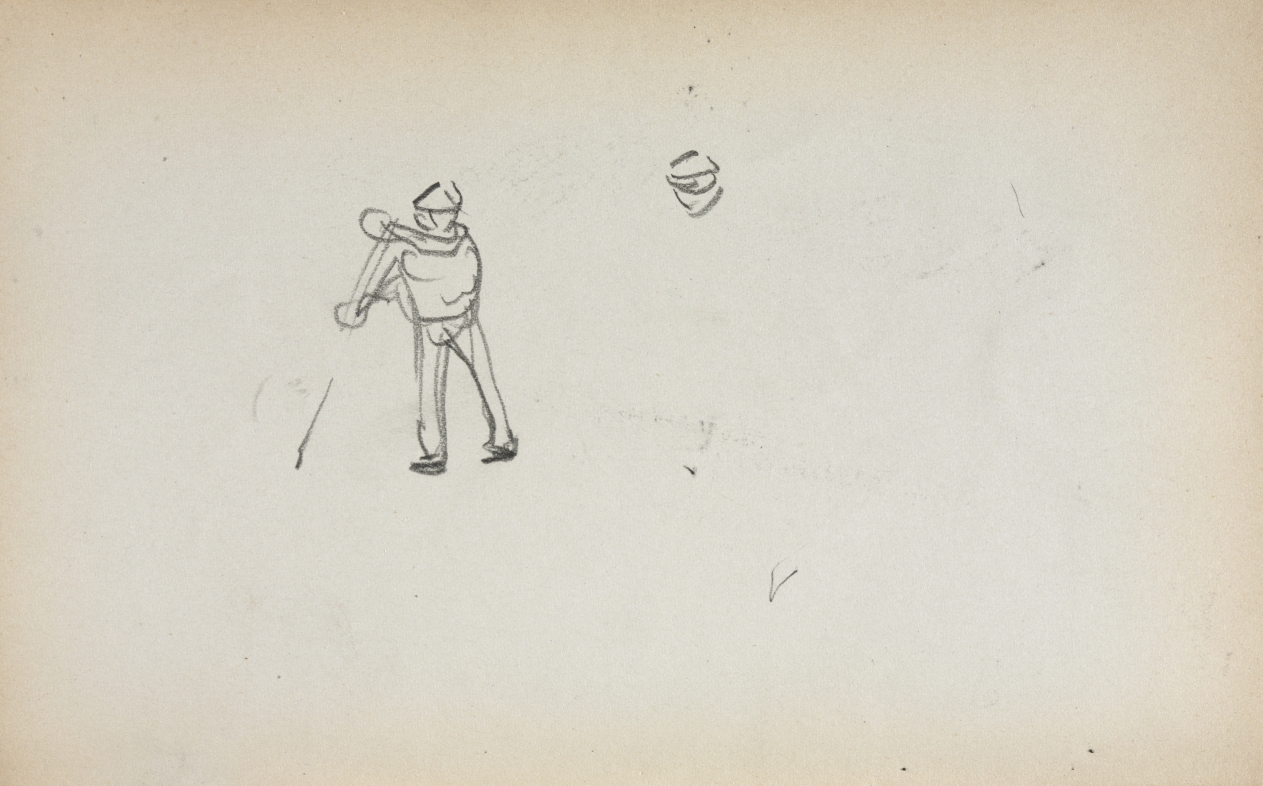 This pencil sketch from Maurice Prendergast's Italian Sketchbook captures a gondolier with the artist's characteristic loose, gestural line work and keen observational study. The drawing demonstrates Prendergast's interest in everyday Venetian life and his ability to convey movement and personality through economical pencil marks. As part of a larger series of travel sketches, this work reflects the artist's practice of documenting his impressions during his 1898 and 1899 visits to Italy, which would later inform his more finished paintings and prints.