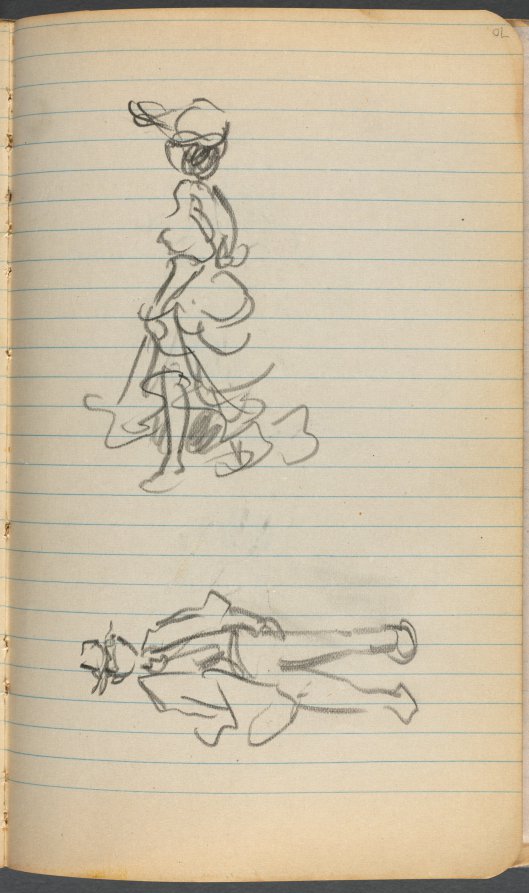 Maurice Prendergast's graphite sketch depicts two figures rendered with loose, gestural linework characteristic of his sketchbook practice. The artist employs economical draftsmanship to suggest form and posture, allowing the paper to remain visible between the marks rather than pursuing detailed modeling. This drawing exemplifies Prendergast's working method of capturing spontaneous human observation, likely serving as a study for more developed compositions.