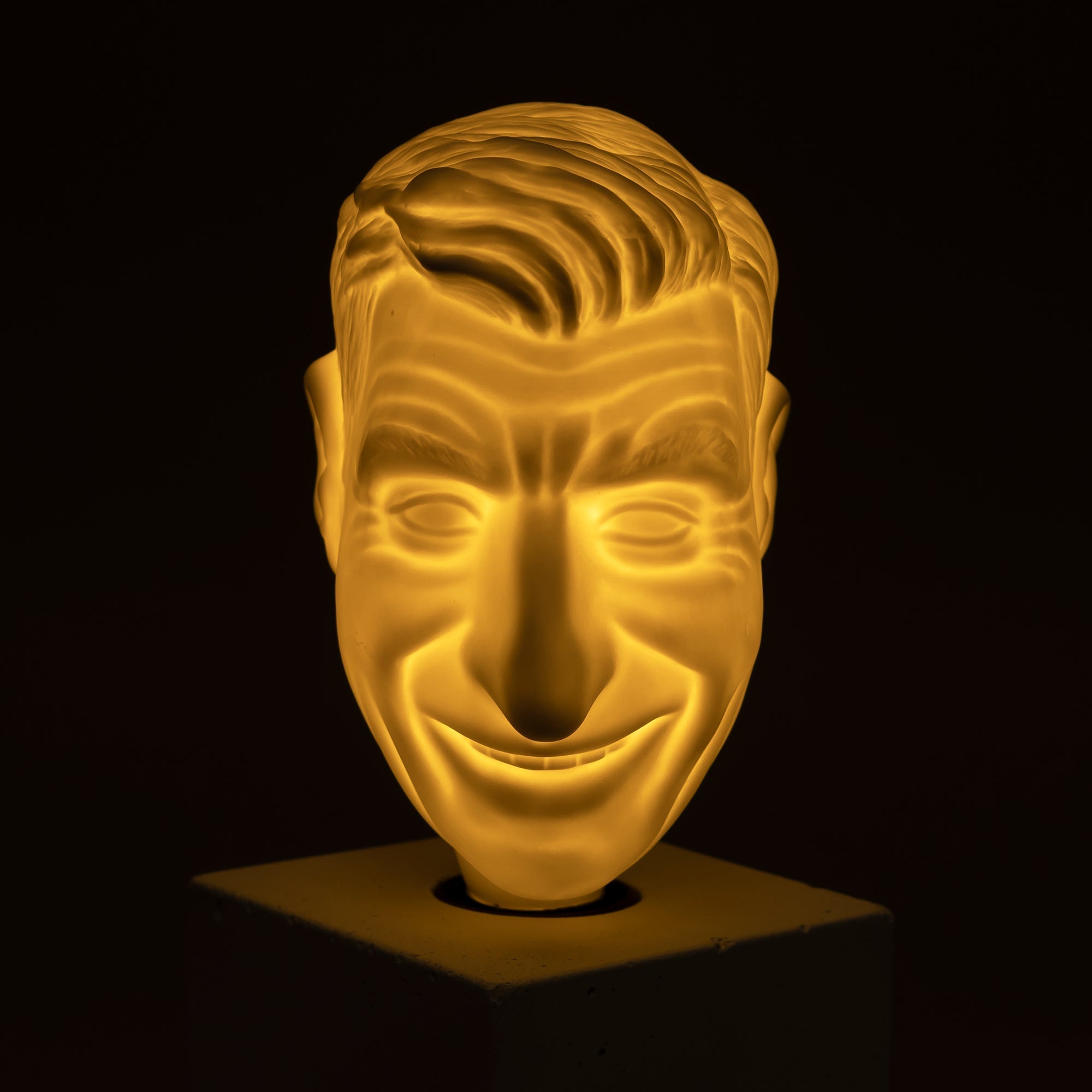 Maurizio Cattelan (Italian, b. 1960) Yes! , 2019 Medium: Light sculpture (Porcelain, LED lightbulb 230V) Dimensions: 17.8 x 12.7 x 9.5 cm Edition of 500: The work comes with a stamped certificate of authenticity; lightbulb stamped on the back Condition: Excellent (sold in its original box) Please note: The sculpture is sold without the lamp base.