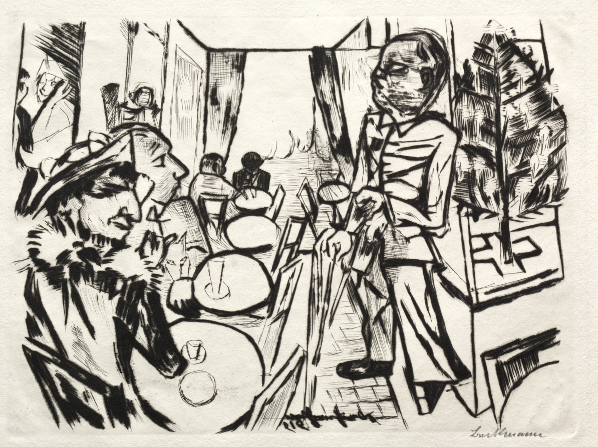 Executed in the immediate aftermath of World War I, this drypoint exemplifies Beckmann's shift toward a more brutal, expressionist style that would define his mature work.