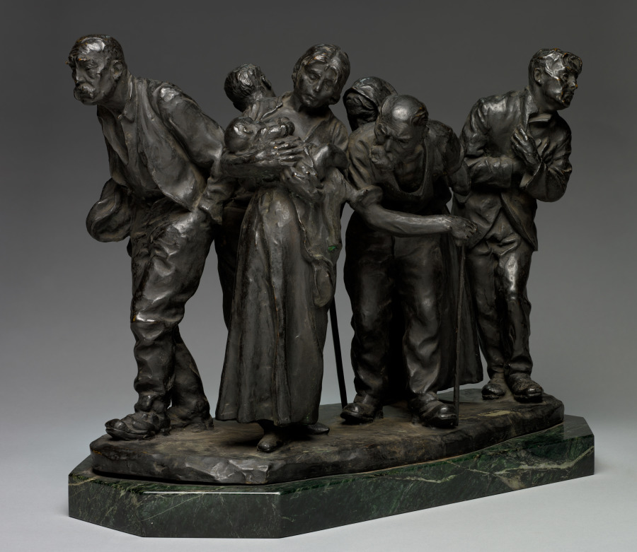 Cast in bronze during the height of American social realism, this powerful sculpture captures the dignity and hardship of Depression-era unemployment with emotional directness and sculptural authority.