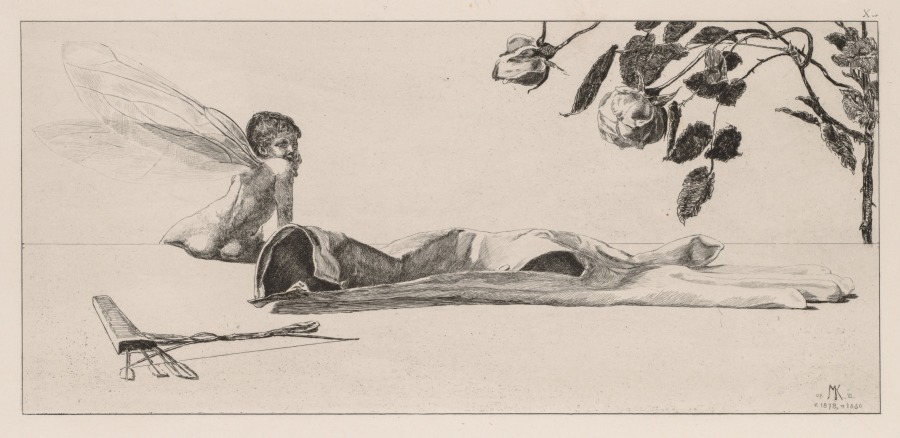 Final plate of the 'Glove' series transforms the Roman god of love into a modern psychological symbol, demonstrating Klinger's fusion of classical mythology with contemporary concerns.