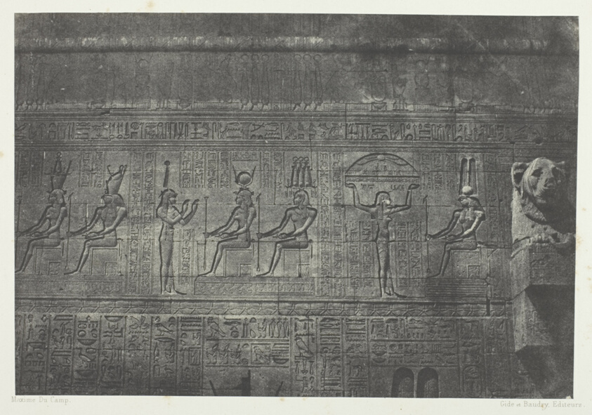 Another detailed study of Dendera's sculptural program, this print highlights the precision with which early photography could record complex relief carving and hieroglyphic inscriptions.