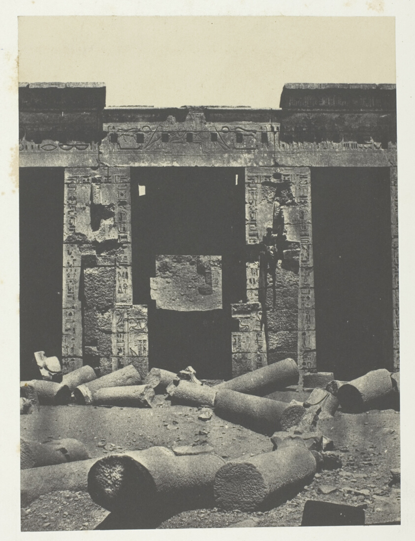 Médinet-Habou, Partie Orientale du Péristyle du Palais de Ramsès-Méiamoun; Thèbes, plate 51 from the album "Egypte, Nubie, Palestine et Syrie" (1852)