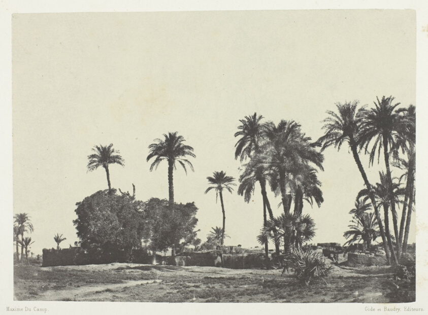 Breaking from monumental subjects, this intimate view of an Upper Egyptian village reveals Du Camp's interest in documenting contemporary life alongside ancient ruins.