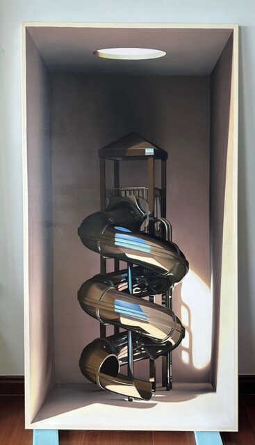 This oil painting by Mehdi Ghadyanloo presents a powerful and contemplative study of conflict and human resilience. The composition captures the essence of a solitary figure, rendered with expressive brushwork that conveys emotional depth. Created in 2020, the work reflects on themes of warfare and its psychological toll on individuals. The artist employs a rich color palette to heighten the emotional impact of the subject matter. This piece exemplifies Ghadyanloo's interest in exploring the human condition through portraiture and figurative work.