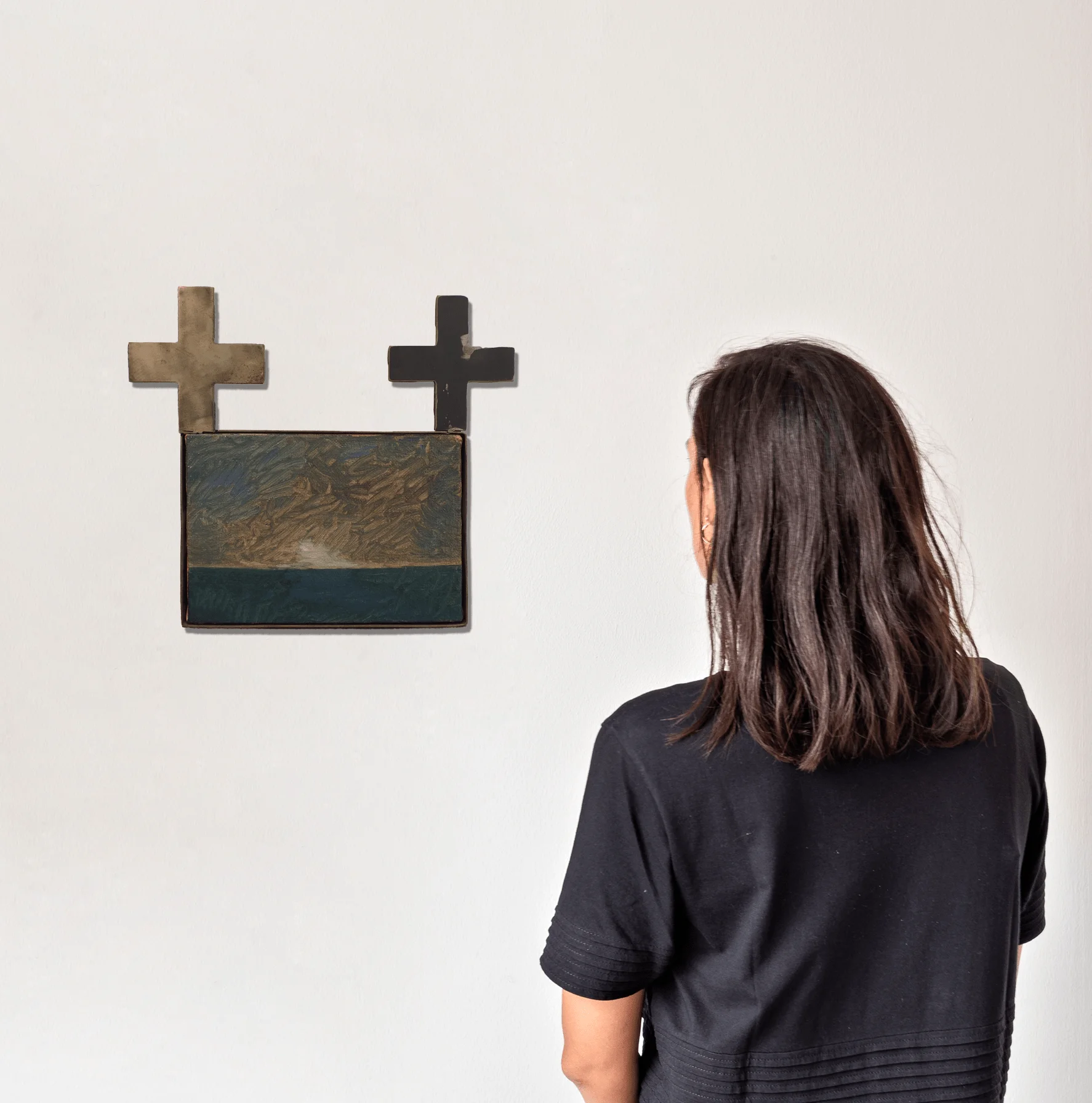 - Mixed media on canvas, iron frame