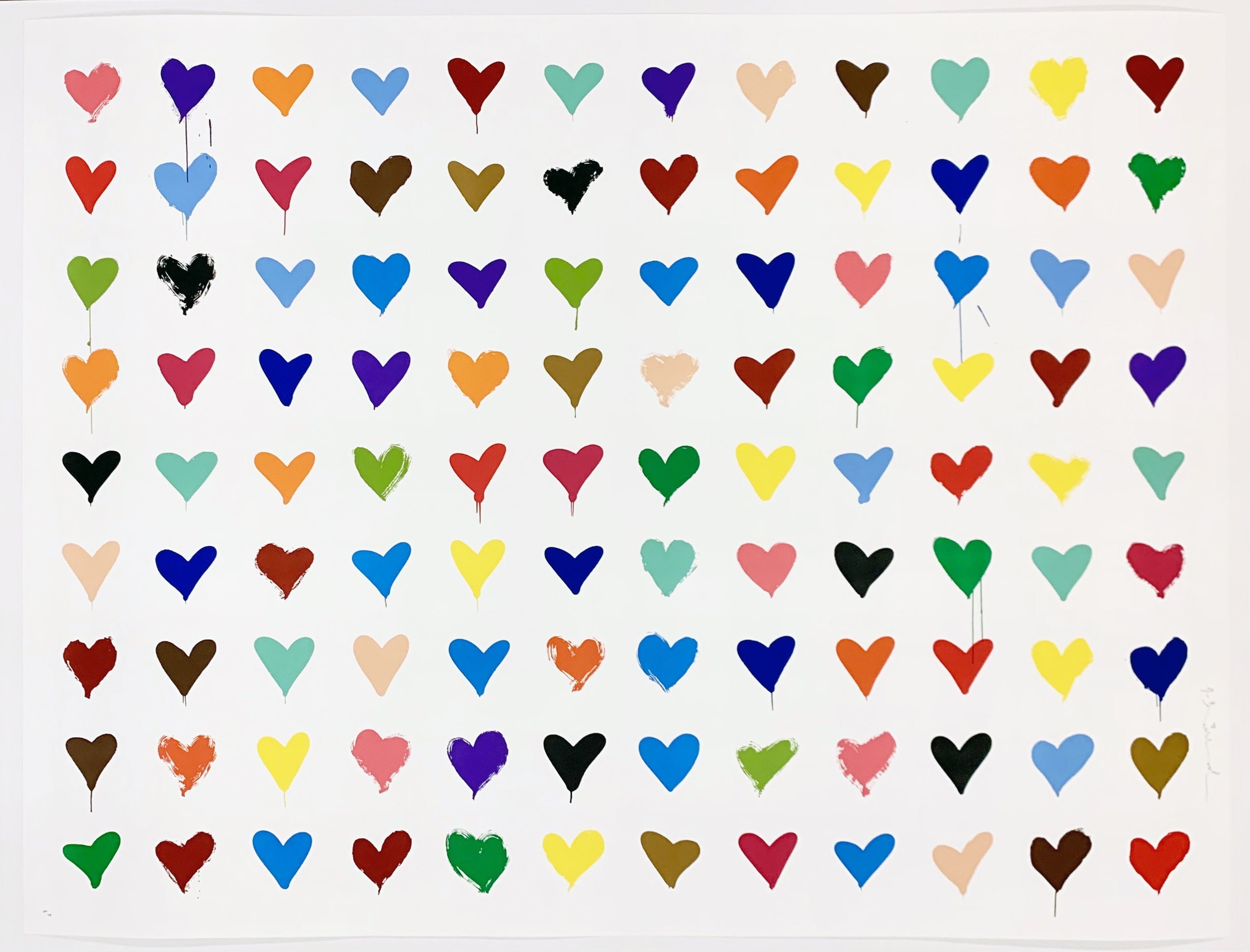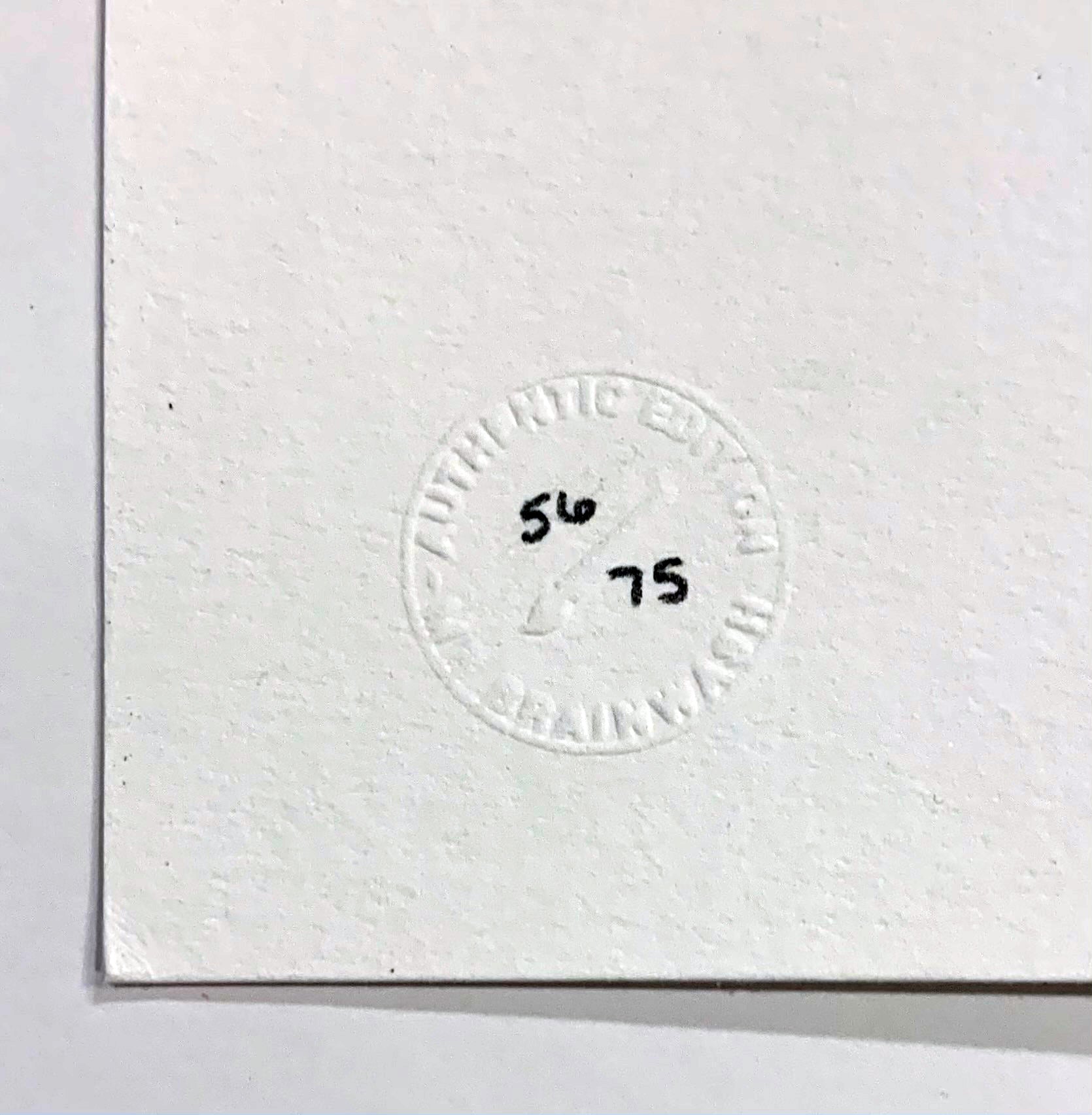 This vibrant screenprint presents Mr. Brainwash's characteristically playful interrogation of mass culture iconography and commercial messaging. Executed in 2021, "All You Need is He(Art)" layers bold, declarative text with the artist's signature visual language, creating a work that simultaneously celebrates and critiques the language of consumer desire. The title itself, with its parenthetical repositioning of letters, suggests the artist's interest in linguistic deconstruction and the ways meaning shifts when familiar phrases are disrupted. The generous dimensions of 38 1/4" x 50 1/4" allow the work to command gallery space with the imposing presence of advertising itself, transforming the domestic scale of graphic design into monumental statement. As an edition of 75, this screenprint balances accessibility with collectibility, maintaining the handcrafted quality inherent to the medium while reaching a broader audience than unique works allow. Mr. Brainwash's practice consistently engages with the visual vocabulary of street art, commercial signage, and conceptual art, and this piece exemplifies his ability to merge commercial techniques with fine art ambitions. The work operates as both a meditation on love, desire, and authenticity in contemporary culture and as a formally sophisticated exercise in color, composition, and typographic intervention. Collectors drawn to contemporary practice that challenges the boundaries between high and low, commercial and critical, will find significant resonance in this firmly signed and documented edition.