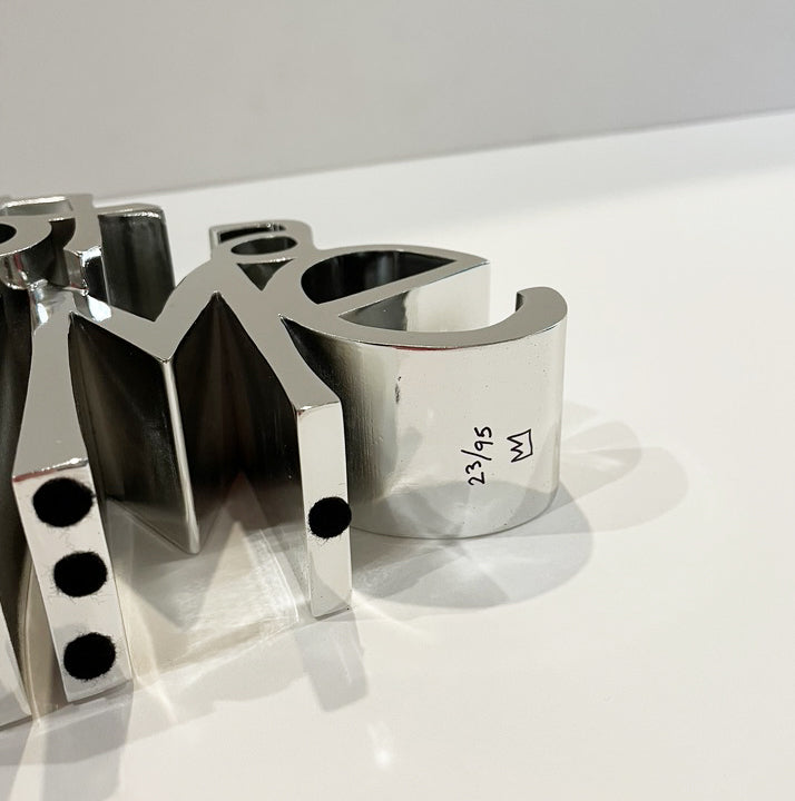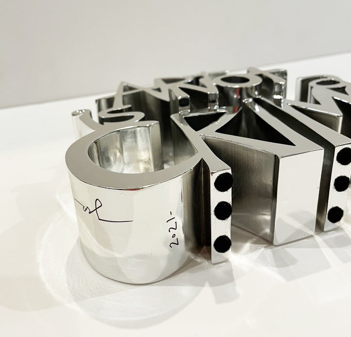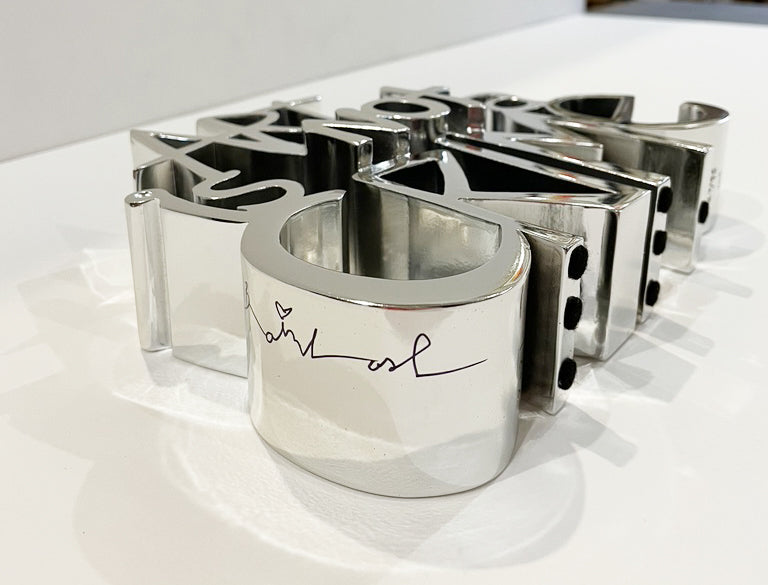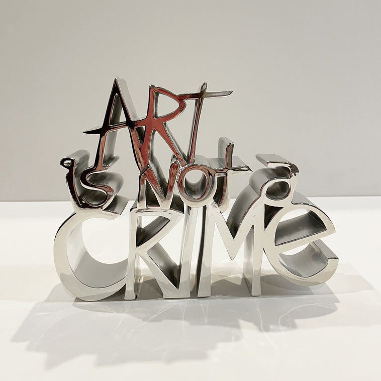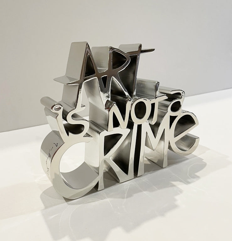 This striking silver-toned work by Mr. Brainwash presents a direct confrontation between artistic expression and institutional constraint, rendered in the artist's signature stenciled style. The piece declares "Art is Not a Crime" in bold, declarative lettering that demands consideration of the tensions between creative freedom and regulatory control. The silvery palette lends an austere, almost metallic quality to the statement, creating a visual weight that mirrors the gravity of its message. The execution demonstrates technical precision while maintaining the accessibility and urgency characteristic of street art practice, making high-stakes philosophical questions visually immediate and impossible to ignore. The work engages with longstanding debates about where art belongs and who has the authority to define it, questions that have shaped cultural discourse for decades. By asserting the legitimacy of artistic practice in its title, Brainwash positions the piece as both declaration and defense, inviting collectors to consider their own relationship to art that exists outside traditional institutional frameworks. This work functions simultaneously as a historical document of contemporary artistic resistance and as a timeless statement about creative autonomy, making it a compelling acquisition for those interested in the intersection of street art practice and conceptual rigor.
