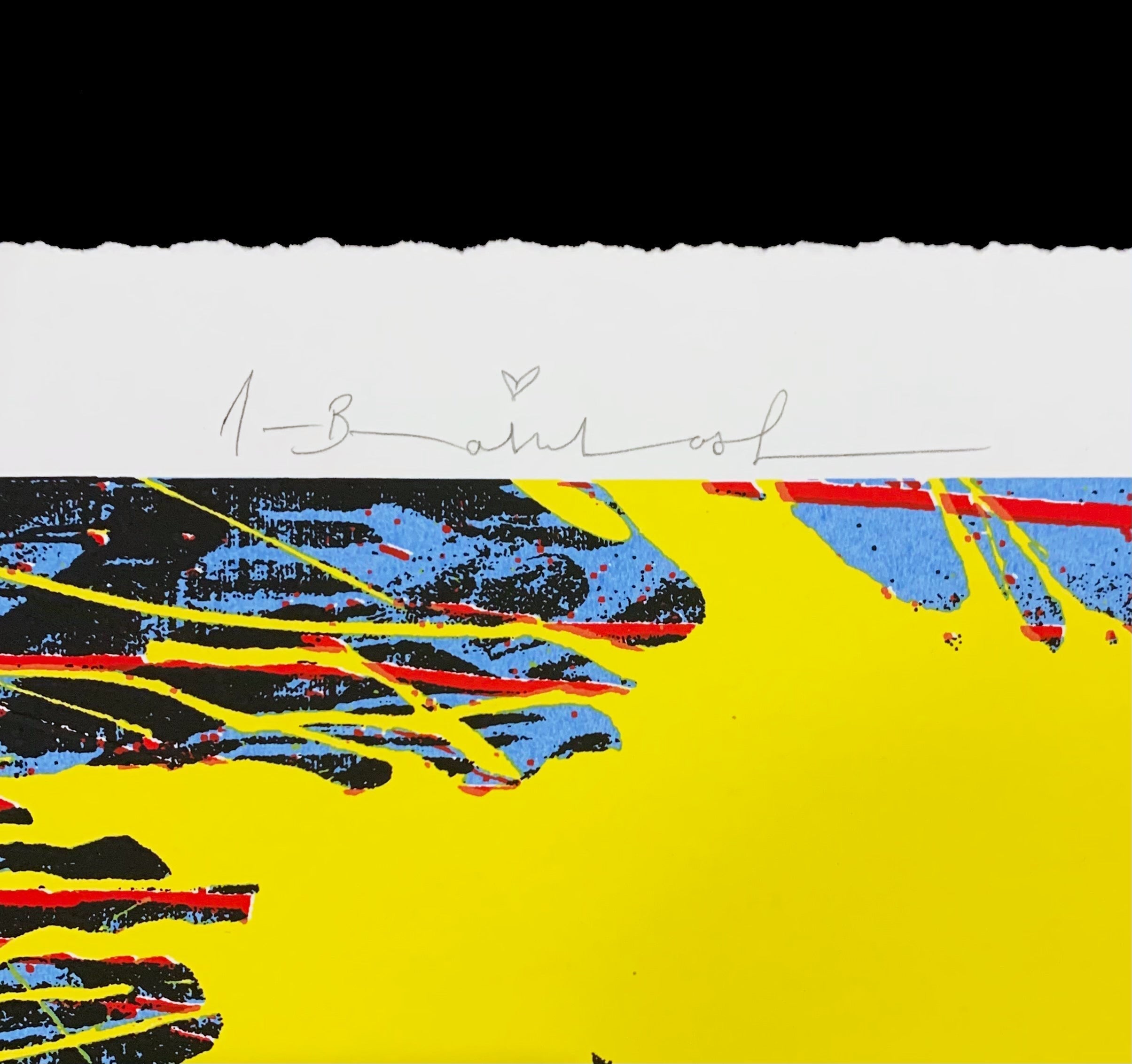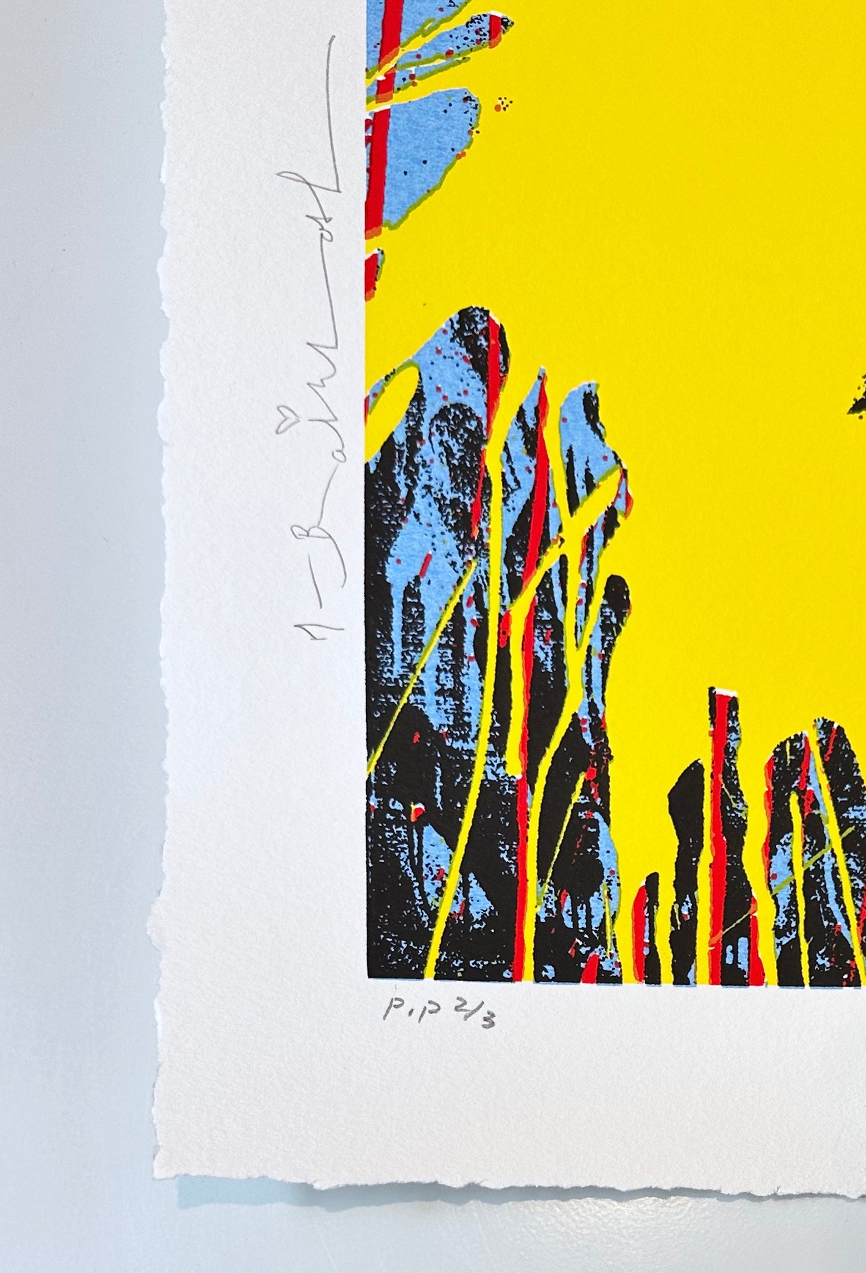 Flowarh$ - II (C) exemplifies Mr. Brainwash's signature visual language of subverting consumer culture through vibrant, graphic silkscreen printing. Created in 2021 as part of the Flowarh$ Portfolio, this work presents bold typographic and floral imagery rendered in the artist's characteristic high-contrast palette. The square format and monumental scale of nearly 32 inches create an immediate visual impact, while the deliberate misspelling of "flower" as "flowarh$" signals the artist's critical engagement with commercialism and language manipulation. This is a printer's proof edition (PP 2/3), a privileged variant aside from the standard edition of 55, underscoring its exclusivity and status as a particularly refined iteration of the composition. The hand-signed print demonstrates Mr. Brainwash's mastery of silkscreen technique, where precise layering and color application yield luminous, graphic results that sit distinctly between fine art and street culture. For collectors seeking work that challenges aesthetic conventions while maintaining technical sophistication, this piece represents a significant example of contemporary printmaking that refuses easy categorization. Its combination of accessibility through the medium of silkscreen with conceptual rigor through its critique of consumer language makes it a compelling acquisition for those attuned to contemporary art's conversation with popular culture.