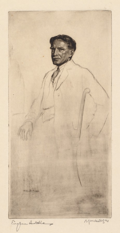 Formal portraiture reveals another facet of Bone's artistic range, applying his precise linear technique to psychological characterization rather than architectural documentation.