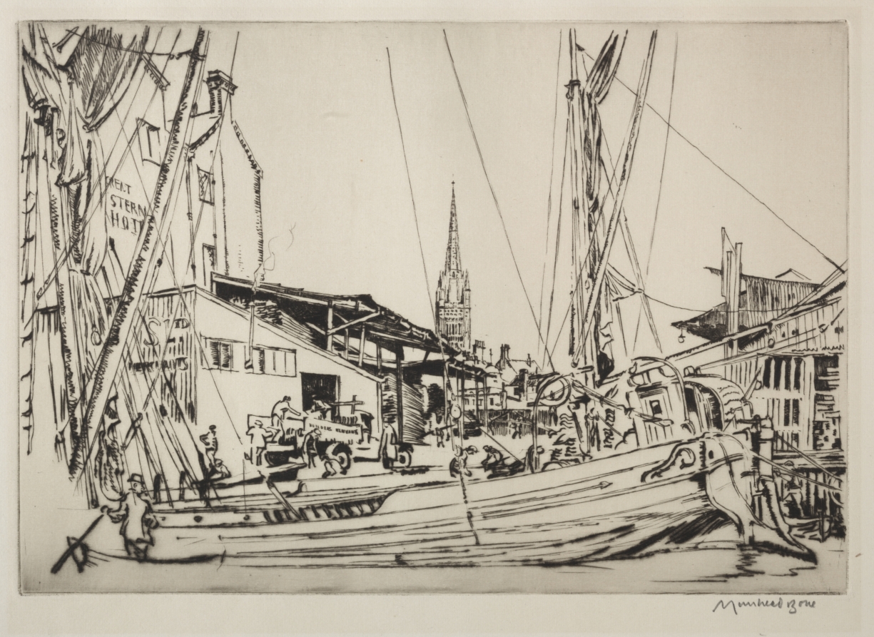 Created late in the artist's career, this drypoint demonstrates Bone's enduring fascination with Gothic architecture and his continued technical mastery in capturing intricate stonework.