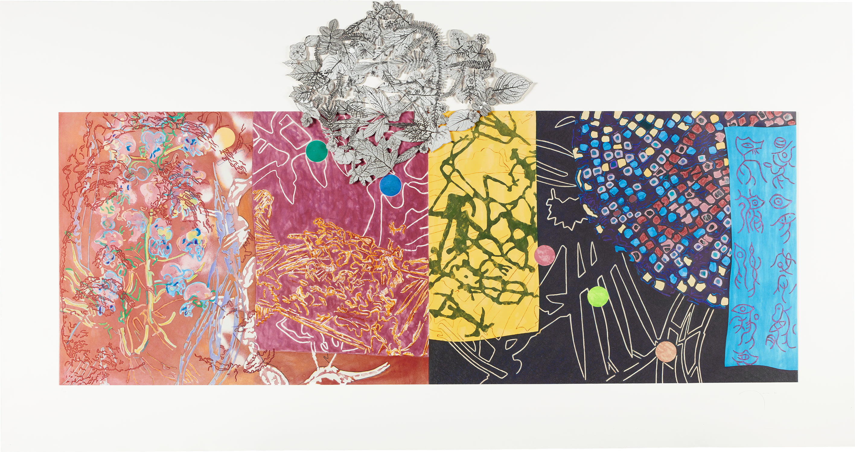 Monumental etching, aquatint and screenprint in colors with screenprinted and embossed collage, on Magnani Aquaforti paper, with full margins.