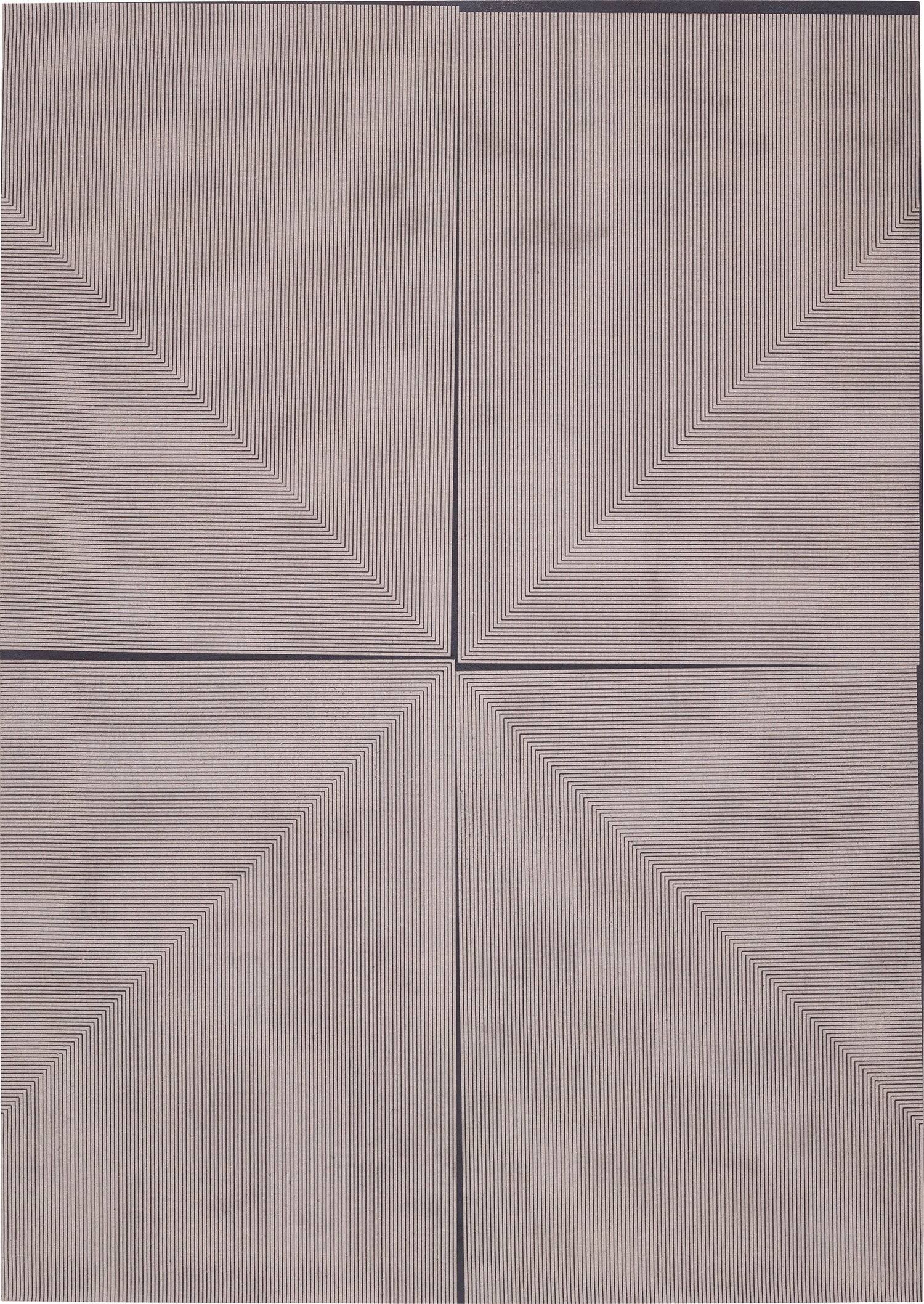 Ned Vena's work from 2010 employs rubber on linen mounted on panel to create a mixed-media composition. The unconventional material choice demonstrates experimental approaches to contemporary art-making.