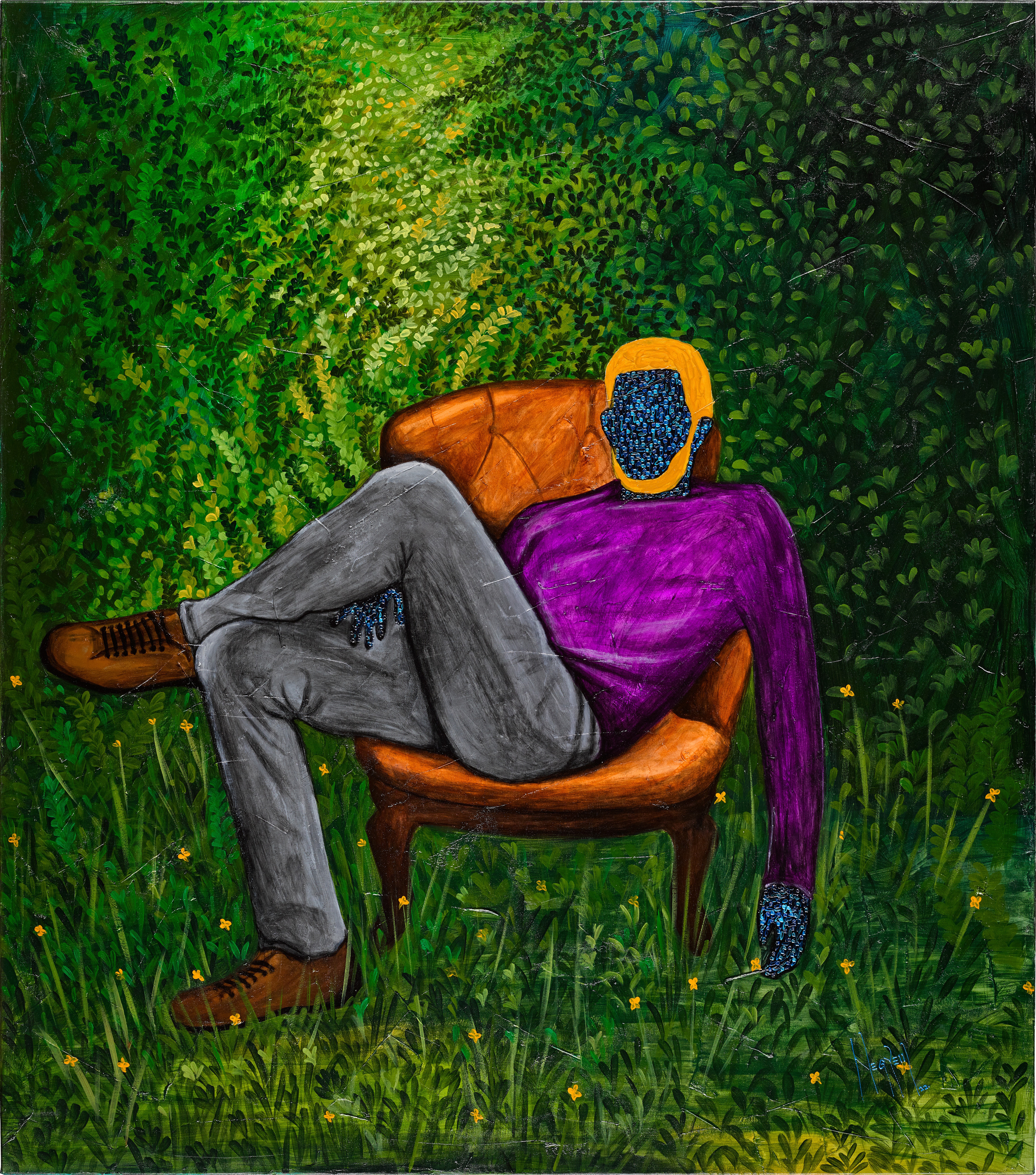 An acrylic painting on canvas by Negyem Adonoo titled In Touch With Yellow, exploring the interplay of color and form. The work emphasizes the chromatic and conceptual significance of yellow.