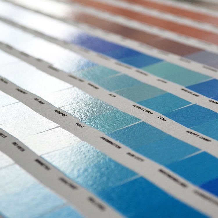 Richter's colour chart paintings and prints directly parallel this work's systematic arrangement of rectangular colour swatches across a grid, sharing the same conceptual strategy of elevating mundane colour reference tools into fine art objects with vibrant geometric precision.