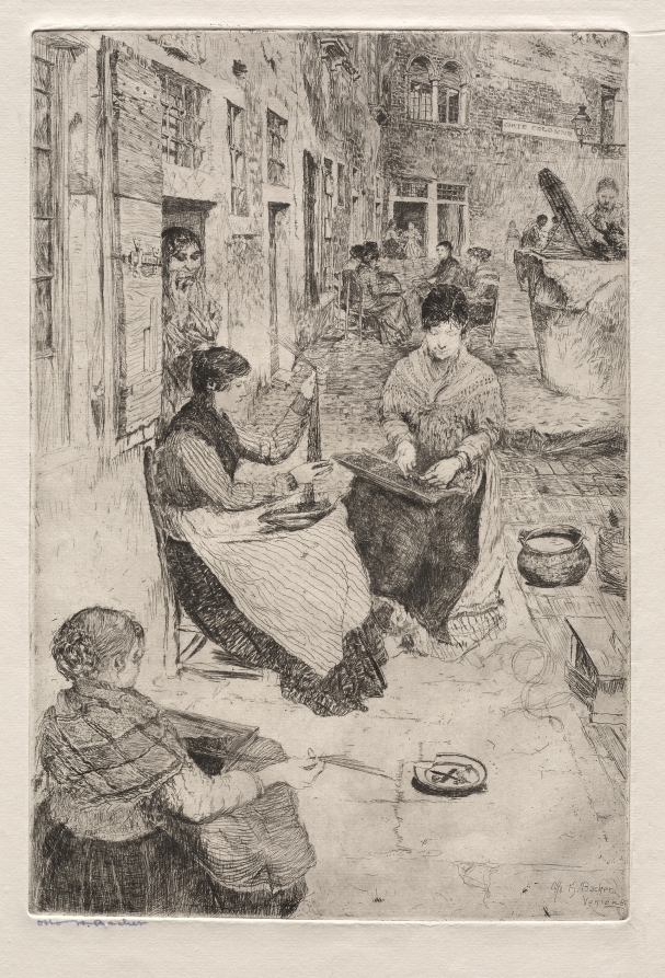 Another glimpse into Venetian craft traditions, showing Bacher's commitment to recording the human activity that animated the city's picturesque settings.