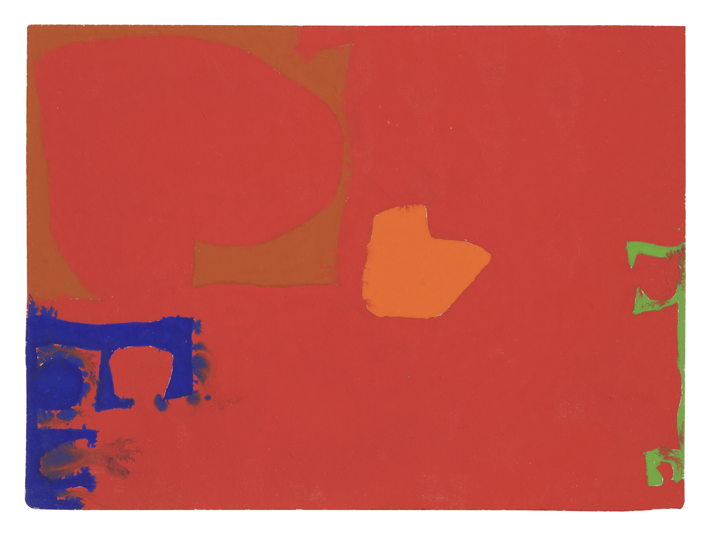 Patrick Heron's "Ultramarine, Sienna, Orange and Emerald in Cadmium: July 26 1970" exemplifies the British abstract painter's signature approach to color field painting, wherein bold expanses of pigment interact dynamically across the canvas. The work's title explicitly names its chromatic components, emphasizing Heron's intentional orchestration of hue relationships and his belief in color's inherent expressive power. Characteristic of his practice in the early 1970s, the painting demonstrates his evolution from gestural abstraction toward a more structured, architectonic use of color planes.