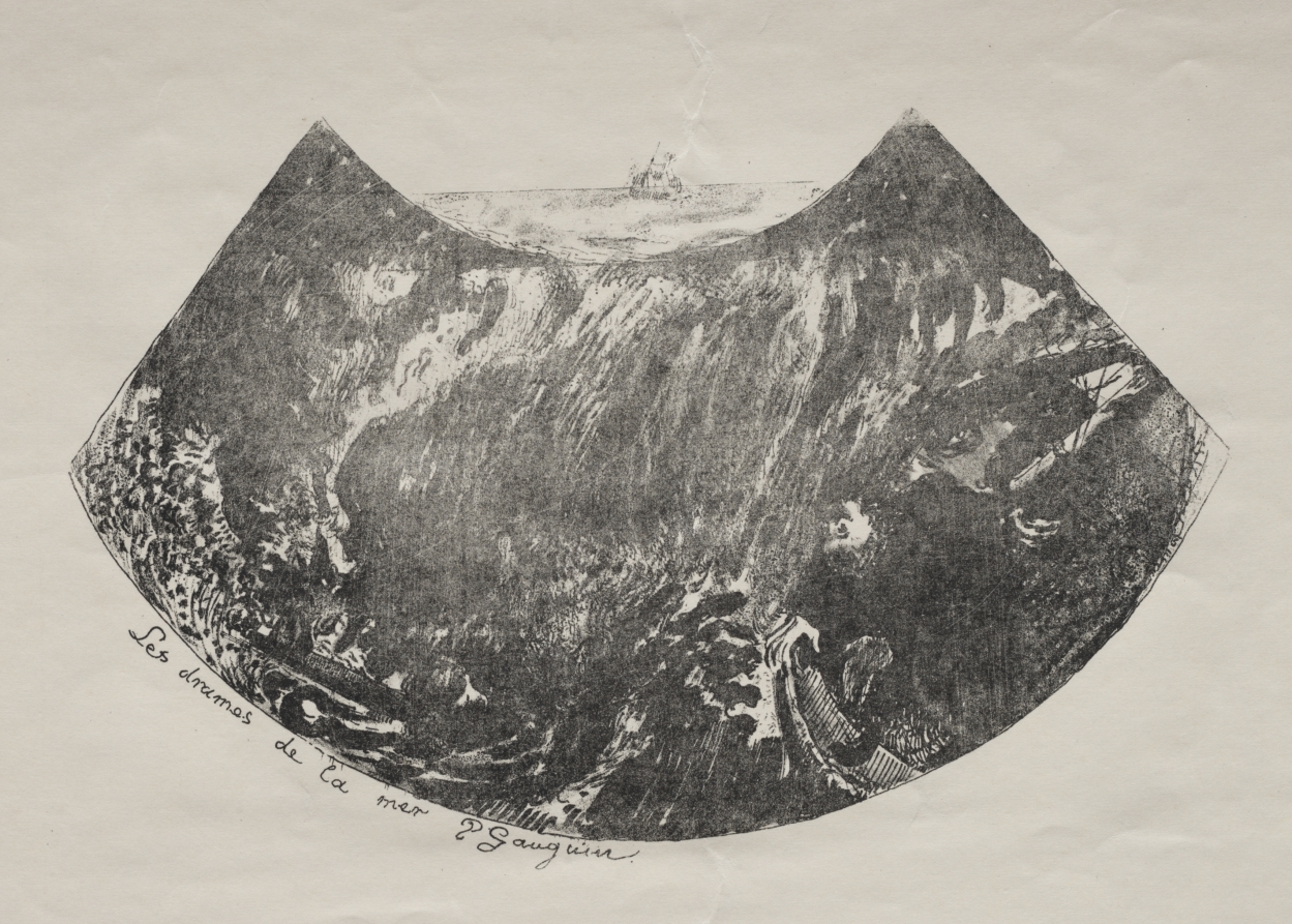 Created during his pivotal Pont-Aven period, this lithograph captures Gauguin's fascination with Breton coastal life through simplified forms and dramatic compositions.