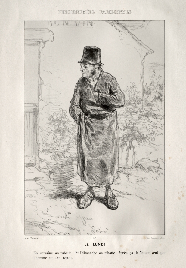 Capturing the particular atmosphere of Monday mornings, the work exemplifies Gavarni's genius for finding universal human experiences in specific temporal moments.