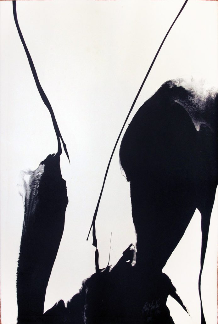 This 1971 lithograph demonstrates Jenkins' mastery of translating his signature fluid color techniques to the print medium, utilizing the stone's surface to create his characteristic flowing, atmospheric forms that evoke natural phenomena through spontaneous gestural mark-making.