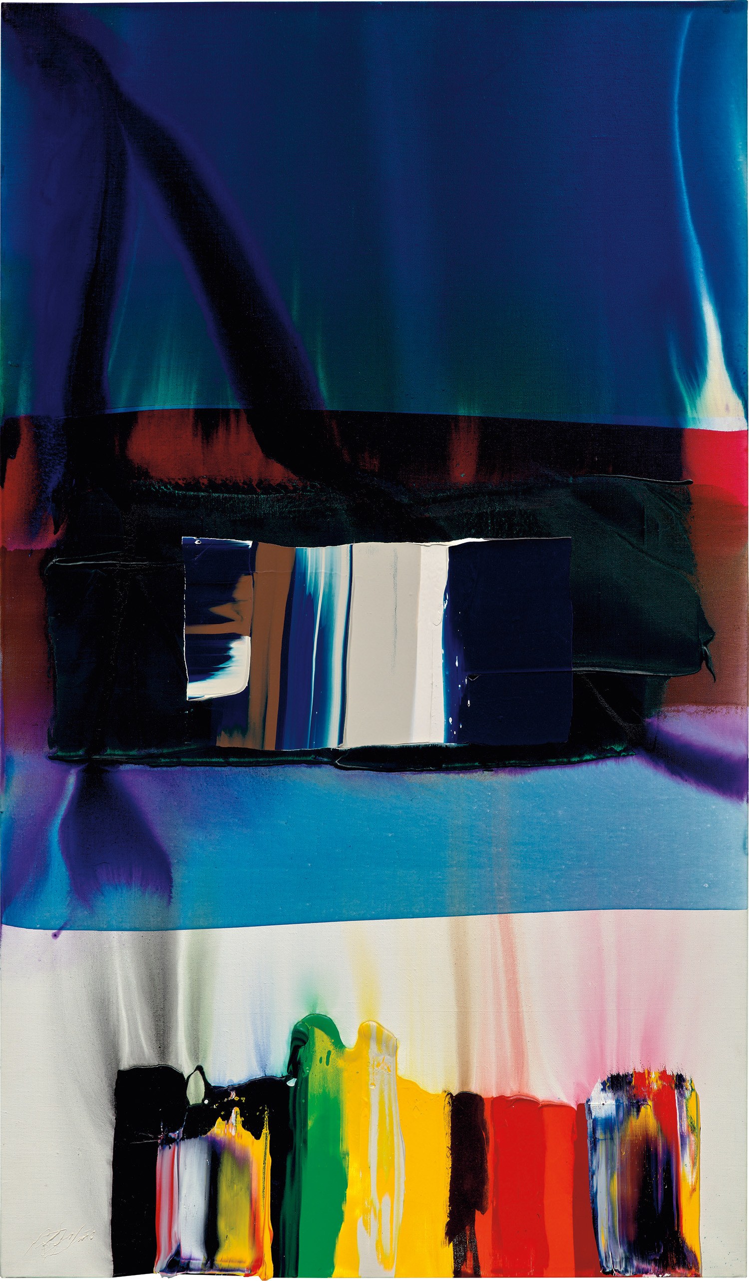 Paul Jenkins' 'Phenomena Saint Paul Guardians' (1984) is an acrylic painting on canvas that showcases his abstract expressionist approach. The work combines flowing forms and dynamic color to create a sense of spiritual guardianship and protection.