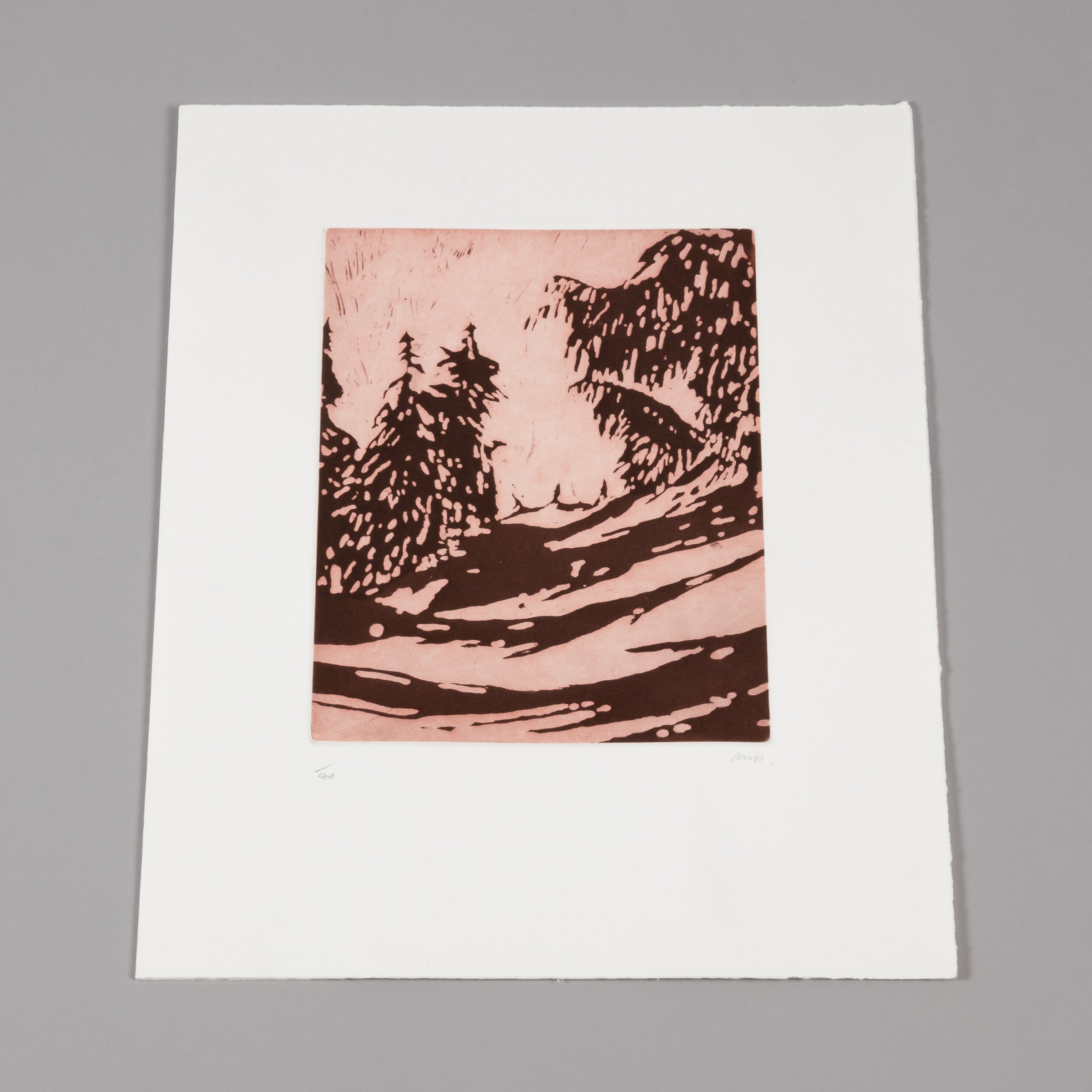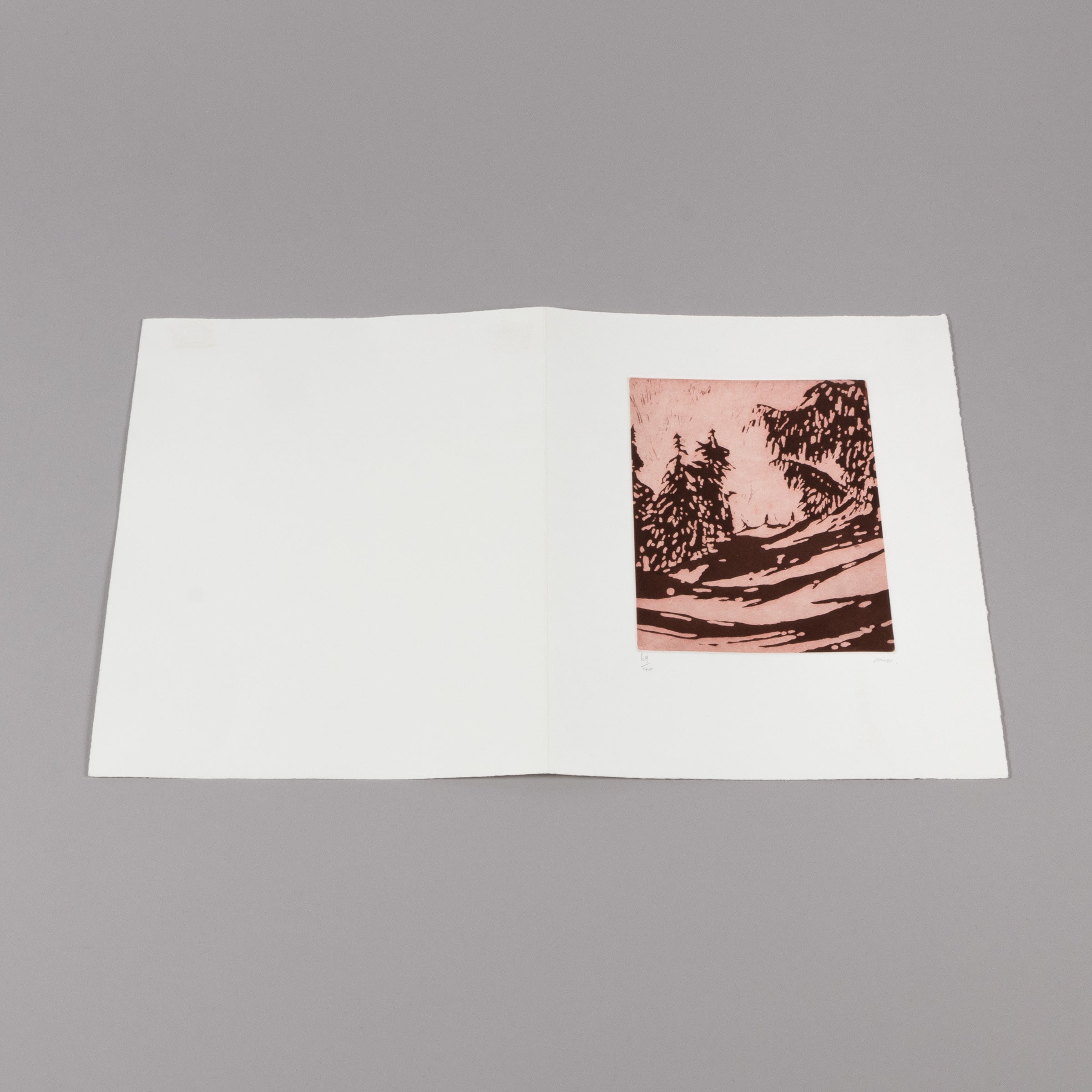Peter Doig (born 1959 in Edinburgh) Untitled (Winter Scene) , 2004 Medium: Etching and aquatint on wove paper (folded double page) Folded dimensions: 29 x 23.5 cm (11 3/8 x 9 1/4 in) Unfolded dimensions: 29 x 47 cm (11 3/8 x 18 1/2 in) Edition of 70: Hand-signed and numbered in pencil Condition: Very good
