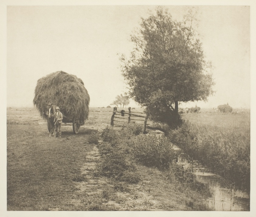 Agricultural rhythms of Norfolk life receive Emerson's careful attention in one of his earliest photogravures, establishing themes of rural labor that would define his career.