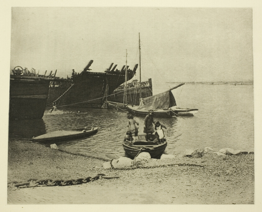 Abandoned vessels decay along the waterfront in Emerson's melancholic composition, showcasing photoetching's capacity to render atmospheric maritime scenes with remarkable tonal subtlety.