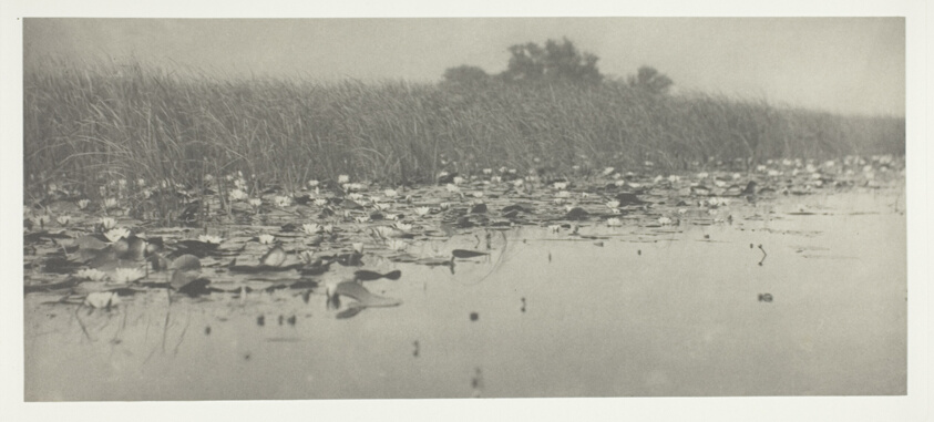 Pure natural beauty receives equal attention alongside human activity, as Emerson applies his documentary approach to the decorative patterns of floating marsh vegetation.