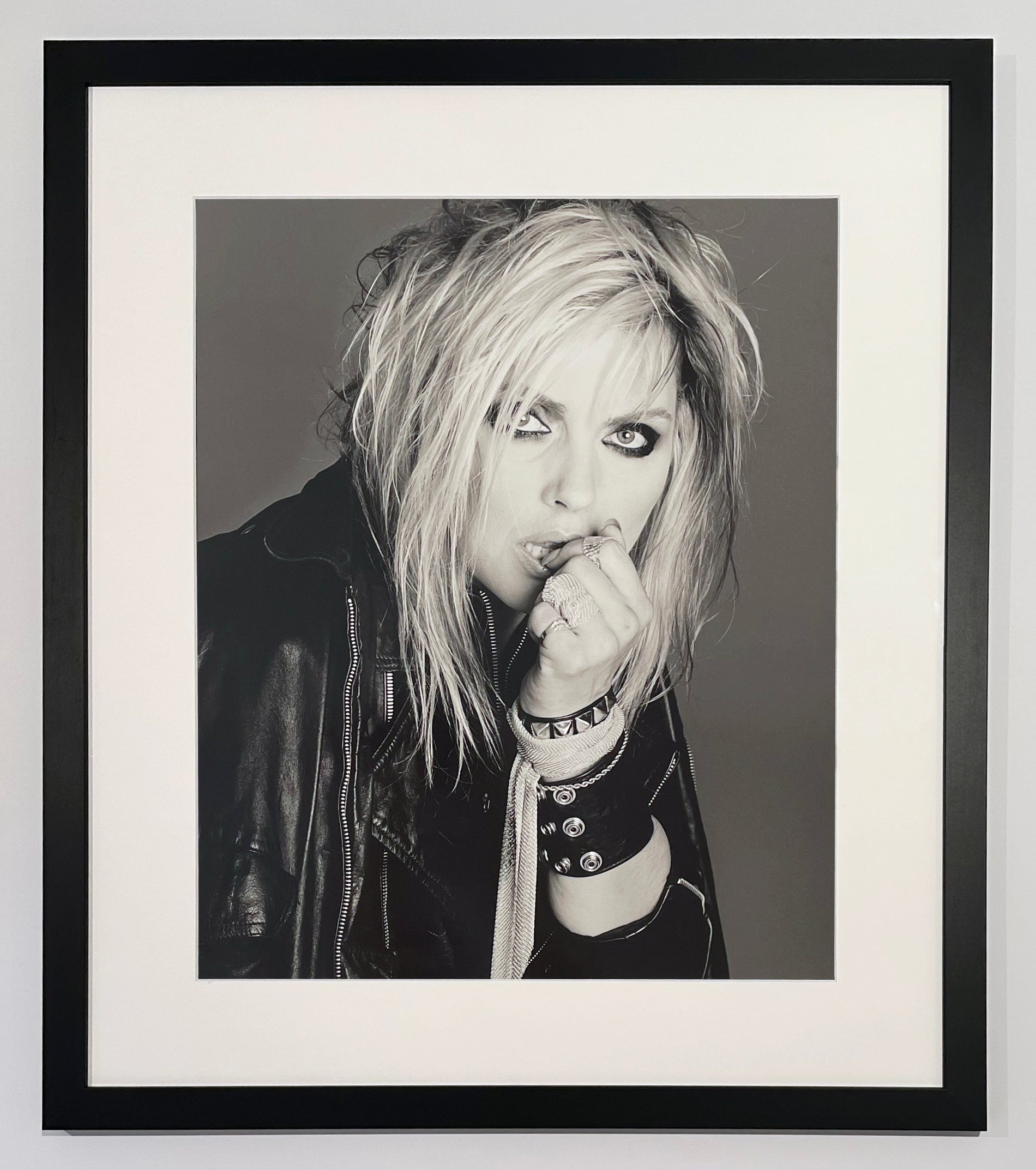 This striking gelatin silver print captures Deborah Harry in 1986 at the height of her influence as both a musician and style icon, photographed by the legendary Francesco Scavullo whose fashion and portrait work defined several decades of American visual culture. The image belongs to Scavullo's "Song" portfolio from his comprehensive photographic retrospective published in 2004, a curated selection that underscores Harry's status as a defining figure of new wave and punk aesthetics. The print demonstrates Scavullo's signature technical mastery, particularly his refined approach to lighting and tonal gradation that renders skin and fabric with luminous precision. The work carries the authentication of the artist's signature and exists outside the primary edition of 150, making it a distinguished example from this landmark portfolio project. For collectors interested in photography that documents late twentieth-century cultural moments, this print offers significant appeal on multiple registers: it represents a pivotal moment in popular music history, showcases one of photography's most celebrated practitioners at his mature height, and provides a substantive connection to the distinctive visual language of the 1980s. The substantial framing size, nearly thirty by twenty-five inches, allows the psychological presence and compositional sophistication of Scavullo's portraiture to command attention in any collecting context.
