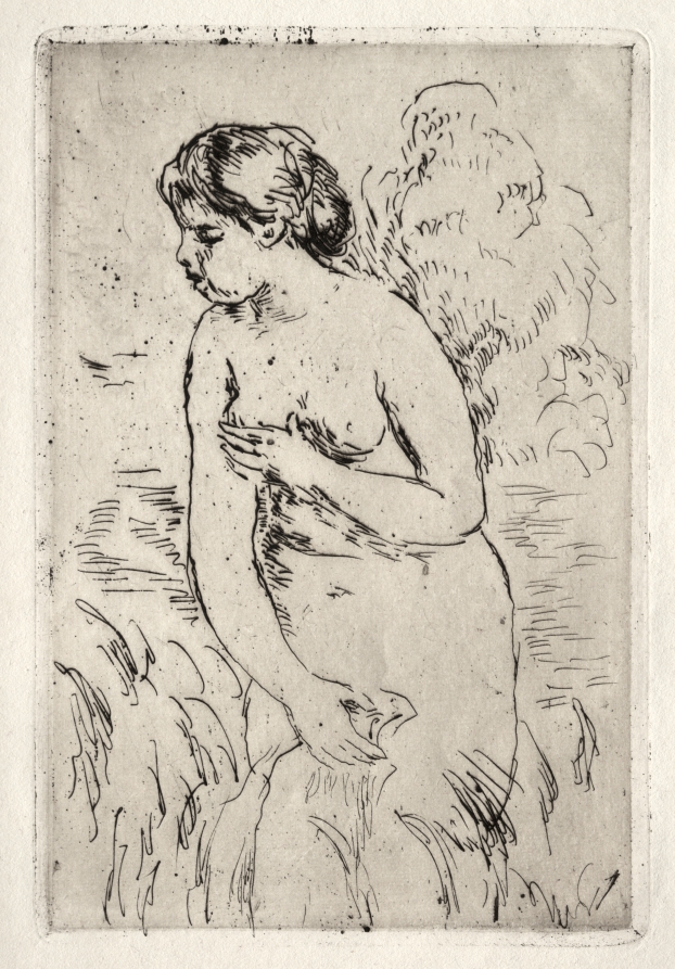 Among Renoir's late prints, this etching shows his enduring fascination with the female figure while adapting his style to the linear demands of printmaking.