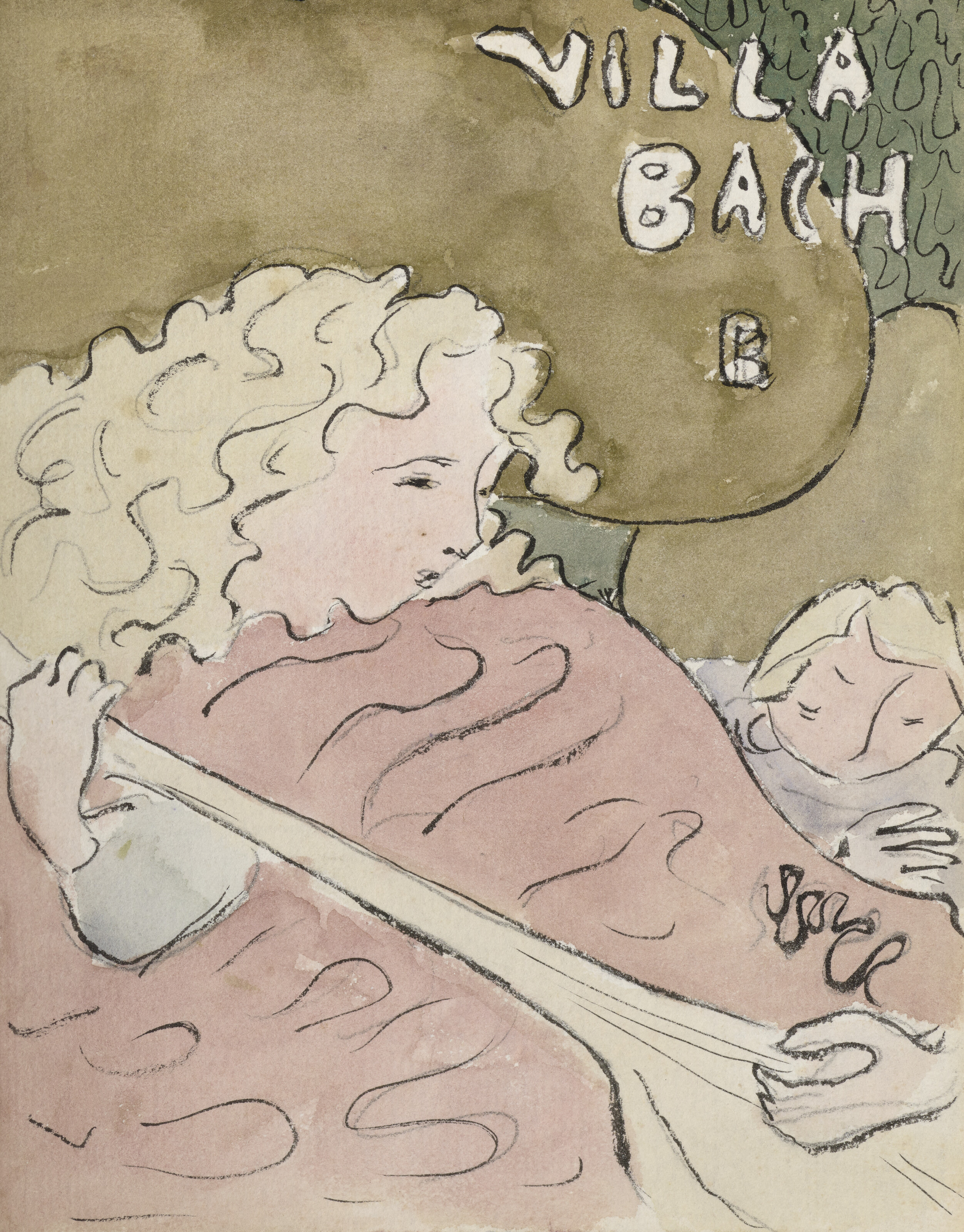 A design proposal by Pierre Bonnard for the Villa Bach program, depicting a woman playing a mandoline in Bonnard's characteristic Post-Impressionist style.