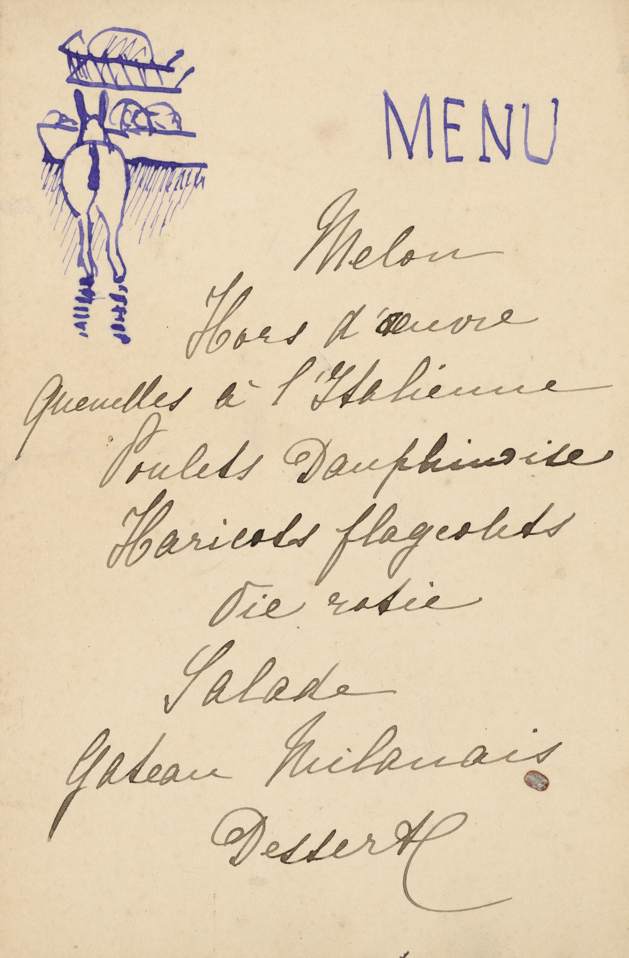 An untitled menu design by French Post-Impressionist artist Pierre Bonnard, showcasing his decorative sensibilities and graphic approach. The work exemplifies Bonnard's versatility across fine and applied arts.
