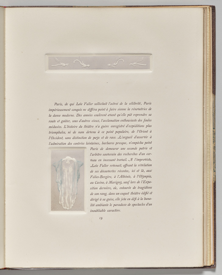 Combining decorative elements with figurative art, this gypsograph shows a woman in a classical pose with hands raised to her head, reflecting Art Nouveau sensibilities.