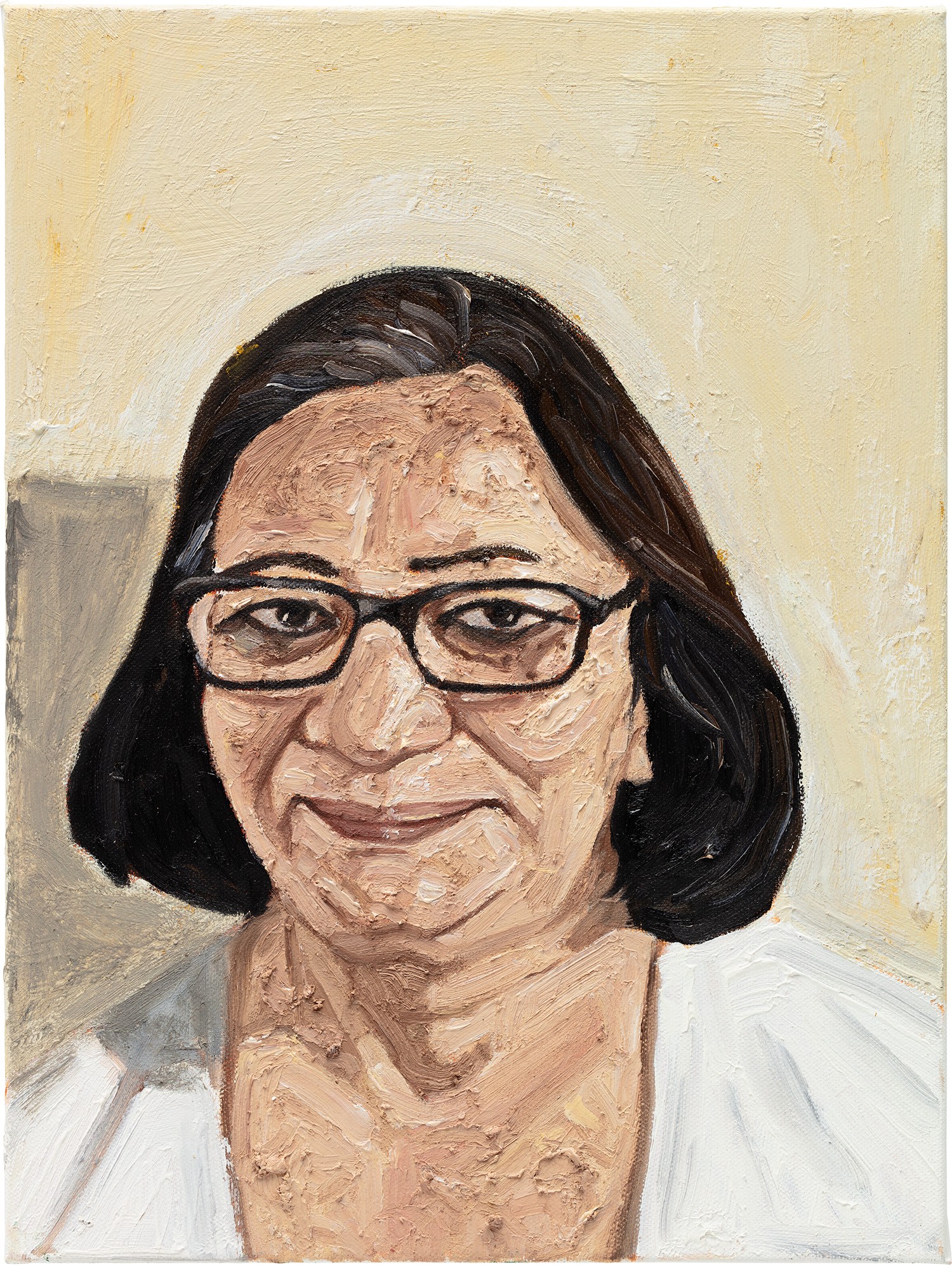Raghav Babbar's 'Warden' is an oil painting on canvas created in 2021. The work likely explores themes of authority, surveillance, or institutional power through its titular subject.