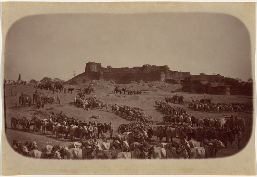 Military might takes an exotic turn with this unusual documentation of elephant-mounted artillery, showcasing the adaptation of European warfare to Indian conditions.