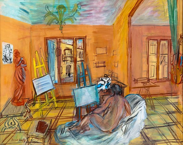 Painted during the artist's wartime exile, the studio interior reveals Dufy's ability to find beauty and creative inspiration even in times of displacement and uncertainty.