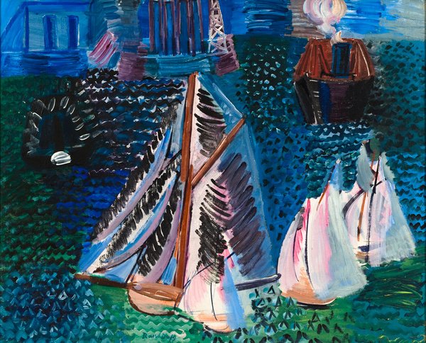 Celebrating his native Le Havre's maritime heritage, this oil painting showcases Dufy's mature style where bold color and simplified forms create a joyous vision of French coastal life.