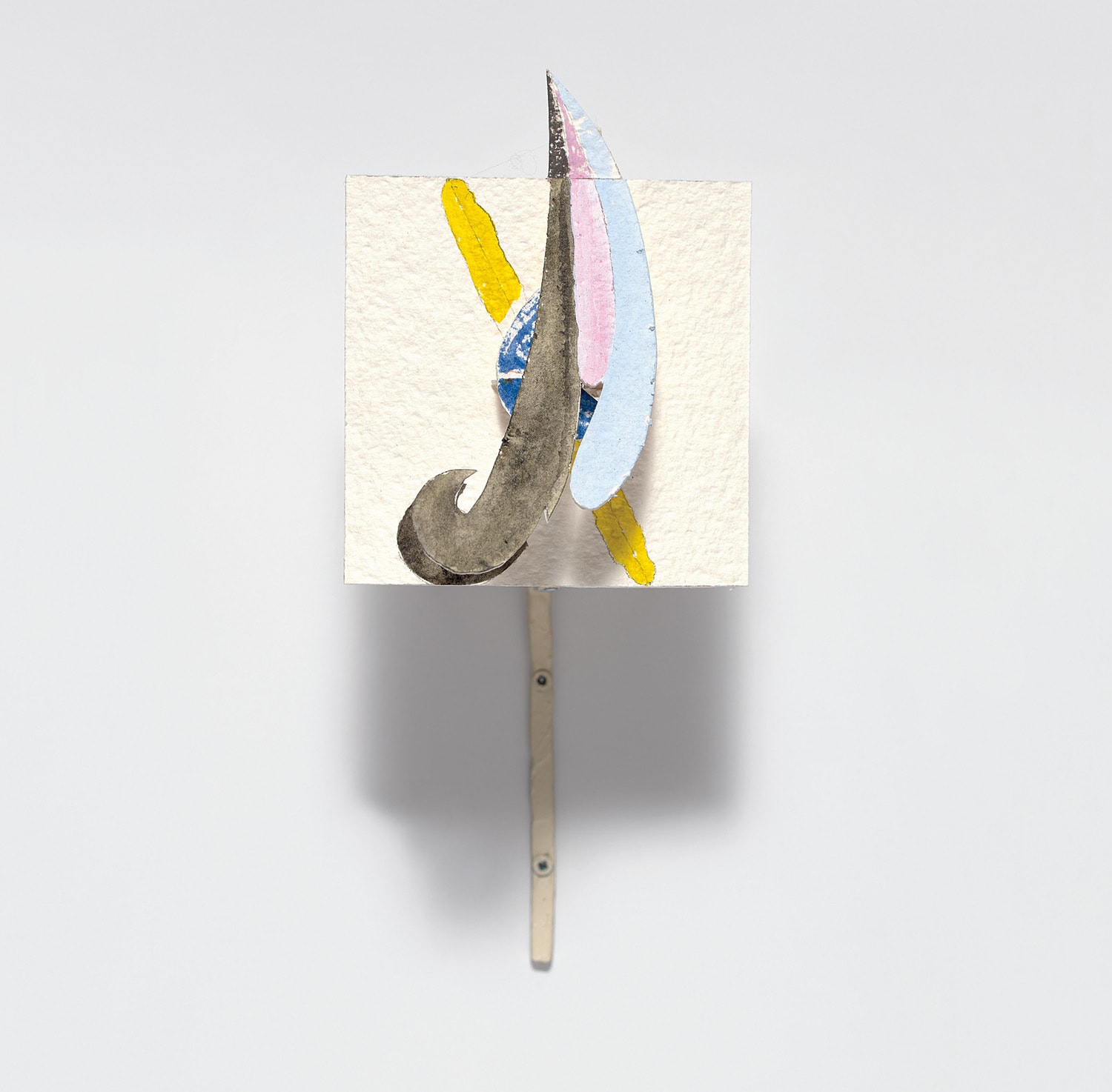 Richard Tuttle's 'Section I, Extension E' from 2007 is a mixed-media assemblage combining paper, acrylic, aluminum foil, hammered aluminum armature wire, graphite, hot glue, wood, and screws. The work demonstrates Tuttle's minimalist approach to sculpture and his exploration of humble materials elevated to fine art status. The construction reveals the artist's interest in process and material authenticity.